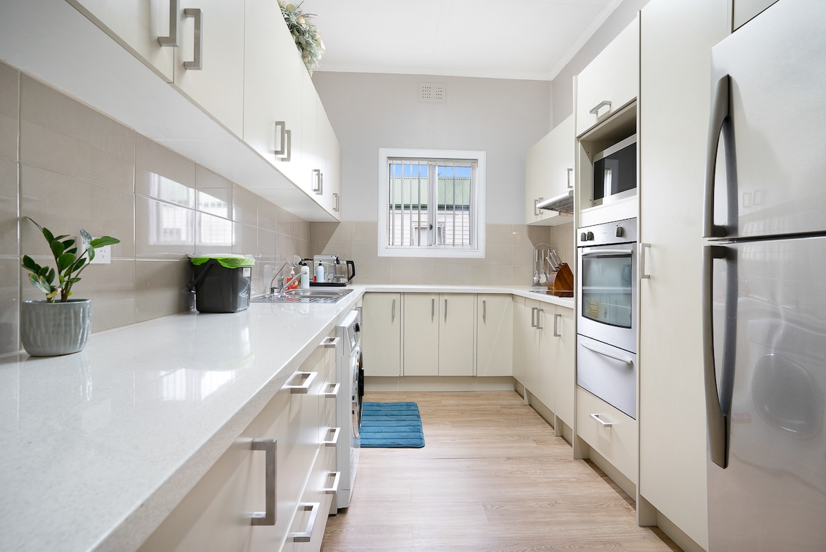 Co Ci się spodoba 💕 *najlepsza lokalizacja – Sklepy i centra handlowe (8 minut spacerem) - szpital, dworzec kolejowy, uniwersytet, stadion WIN (5 minut jazdy) – plaża (5 min jazdy) *szybkie Wi-Fi *bezpłatny parking Nowoczesny dom z 3 sypialniami, długim podjazdem do parkowania, w pełni umeblowaną kuchnią i dużym salonem. Centralnie położony, ale WZDŁUŻ PRINCES HIGHWAY w Figtree. Czasami jest tak dużo pracy, że wjazd i wyjazd z podjazdu może być trudny. OGRANICZENIE UDOGODNIEŃ Miękka gleba na podwórku. NIE NADAJE SIĘ do parkowania.