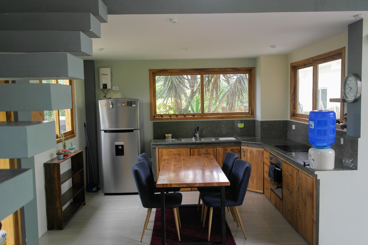 Nasz dom oferuje nowoczesne udogodnienia w cichej, spokojnej i bezpiecznej okolicy. Ciesz się pięknym widokiem na zieleń i niebo ze swojego łóżka i z całego domu. Na terenie nieruchomości znajduje się przestronne podwórko, wygodne patio z hamakiem, w pełni wyposażona kuchnia i prywatny parking, a w otoczeniu panuje spokój. Dom znajduje się niecałą minutę jazdy samochodem (lub 10 minut spacerem) od centrum Manglaralto, a w pobliżu są sklepy spożywcze, piekarnie, restauracje i inne obiekty. Montañita znajduje się w odległości zaledwie pięciu minut jazdy samochodem.
