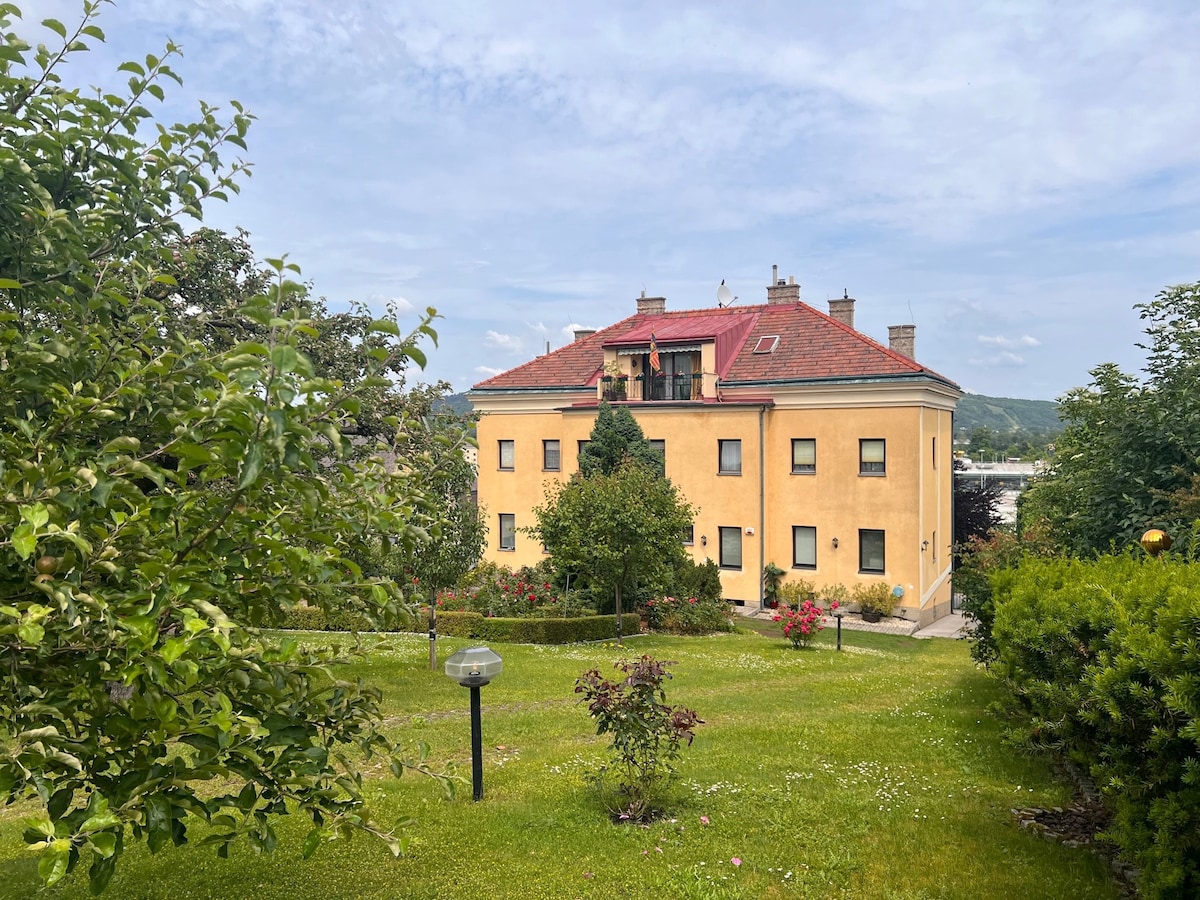 Ten piękny i dobrze wyposażony apartament z bezpłatnym parkingiem przed naszym domem z ogrodem, w tym zadaszonym miejscem parkingowym dla Twoich rowerów, oferuje dużo miejsca i znajduje się w bardzo bezpiecznej i cichej dzielnicy mieszkaniowej, zaledwie 10 minut spacerem od wyspy Dunaju, a także centrum Wiednia jest szybko i łatwo dostępne. Dworzec autobusowy znajduje się zaledwie kilka kroków od domu. Samochodem można dotrzeć do licznych wiedeńskich zabytków w około 15-30 minut.