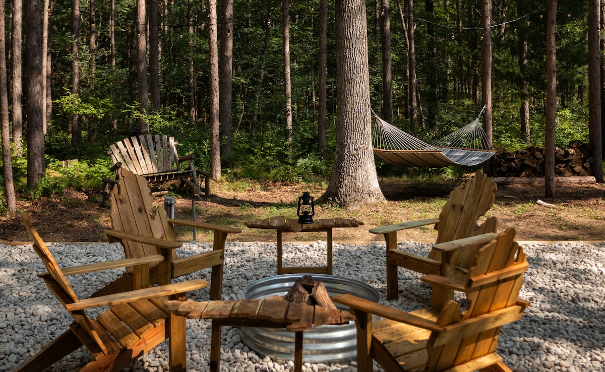 Odkryj swoją oazę w Baldwin w stanie Michigan! Położona głęboko w lesie, nasza chatka oferuje spokojny wypoczynek z naturą na wyciągnięcie ręki. Śpij spokojnie w przytulnym łóżku typu King, łóżku piętrowym lub na rozkładanej sofie. Odpręż się w wannie z hydromasażem po całym dniu wędkowania. Cook up on the BBQ grill and gather around the fire pit for evening stories and cornhole games. Zanurz się w naszym hamaku pośród szepczących drzew. Poznaj raj dla miłośników wędkarstwa i leśnego spokoju. Witaj w ukrytej oazie!