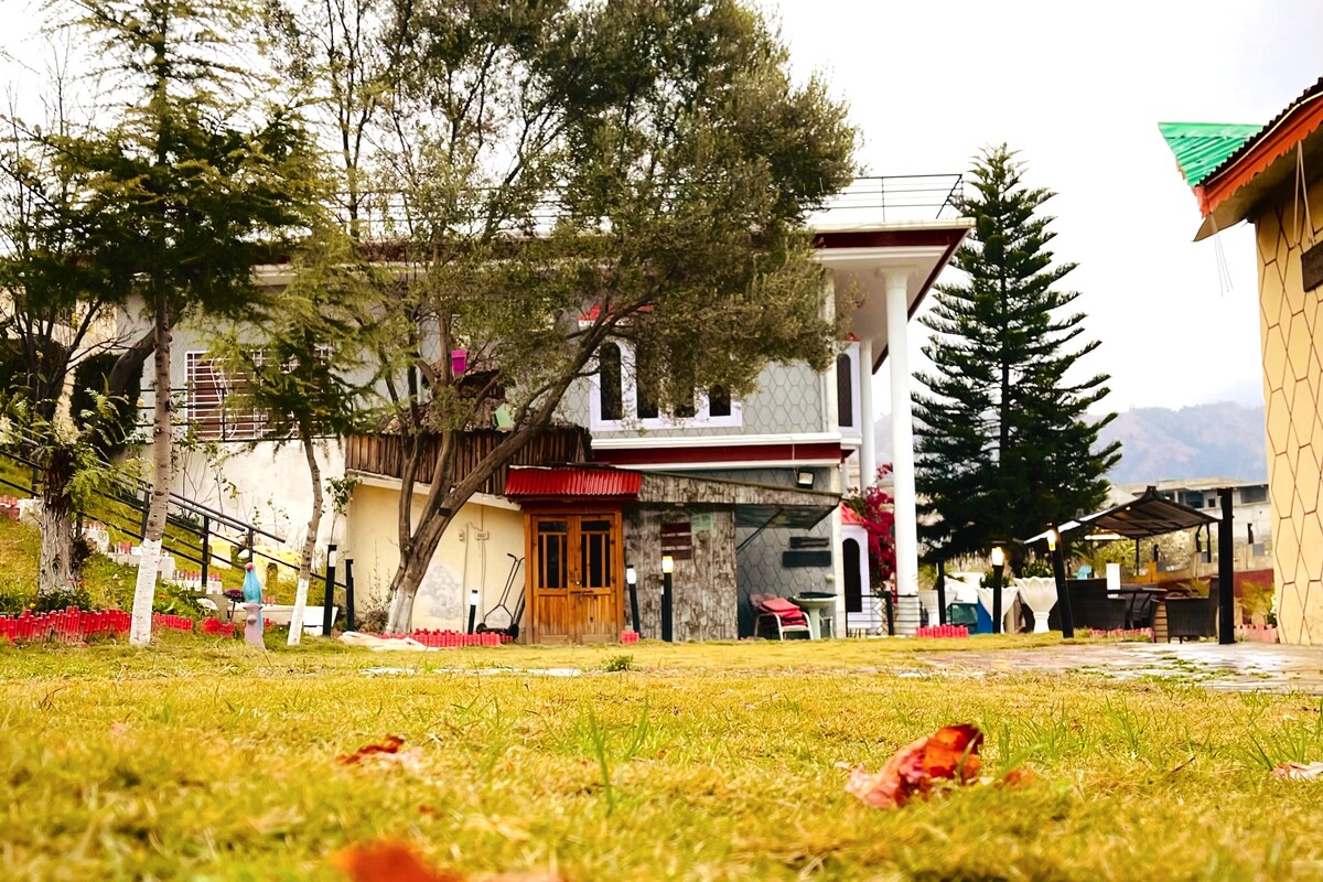 Luksusowy apartament z obsługą i malowniczymi widokami na góry pod kątem 180°. To spokojny ośrodek oddalony o 10-15 minut jazdy od ruchliwego bazaru Nathiagali, kierując się w stronę Kalabagh Airforce Camp i kierując się leśną drogą na obrzeżach lasu. W apartamencie znajduje się dodatkowy prywatny salon rozrywki z kinem domowym, snookerem, tenisem stołowym i symulacją wyścigową Poczuj się jak w domu z personelem składającym się z gospodyni i kucharza. Ogrzewanie, ciepła woda, świetna prędkość Wi-Fi i zasilanie energią słoneczną.