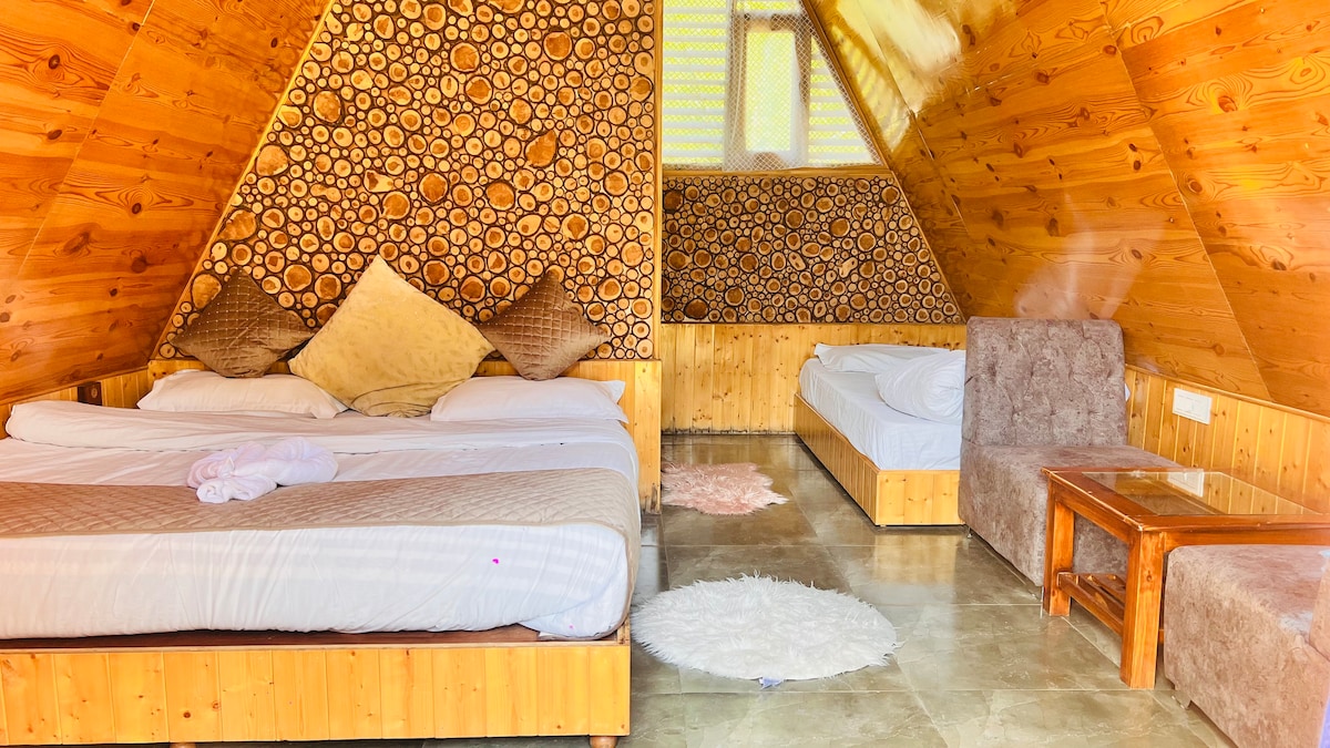 Escape to our peaceful farmstay in Sainj Valley, featuring two cozy duplex cabins—perfect for families and groups of up to 8 guests. Each cabin has 2 bedrooms (one upstairs, one downstairs) and offers beautiful mountain views, fresh air, and complete privacy. Enjoy quiet mornings, open space, and the natural beauty of the Great Himalayan National Park. Our cabins are ideal for travellers looking for a comfortable and nature-filled stay away from the crowd.