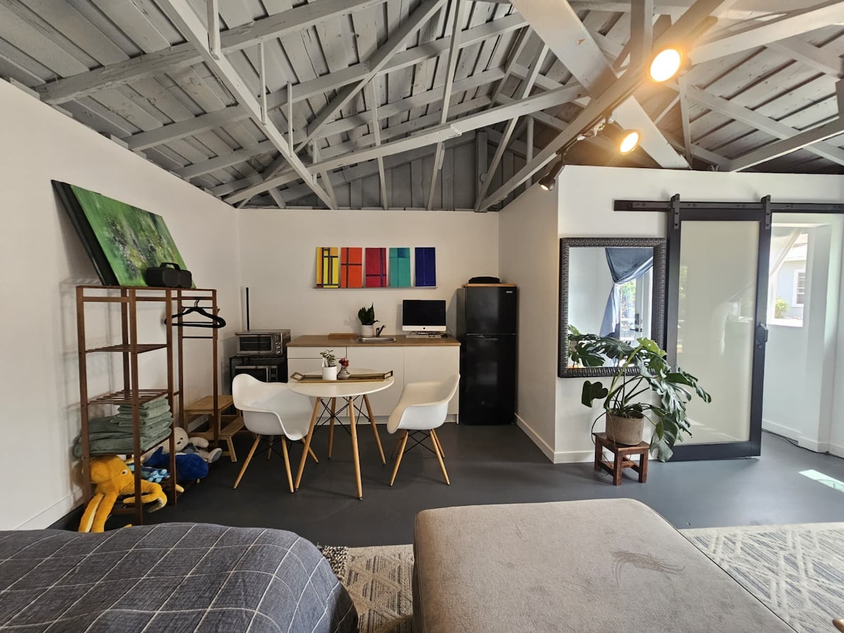 Wejdź po spiralnych schodach do jasnej, przewiewnej, pięknej przestrzeni przypominającej domek na drzewie. Nowoczesne udogodnienia. 1 mila do Abbot Kinney i 1,5 mili do plaży Venice. Wiele miejsc na spacer, do restauracji i sklepów. Rowery dostępne na żądanie i po podpisaniu zrzeczenia się odpowiedzialności. Kuchnia nie jest w pełni wyposażona. Wyposażona jest w mini lodówkę, prasę francuską, ekspres do kawy, ekspres do kawy Nespresso, toster, czajnik do herbaty i kuchenkę mikrofalową. W pomieszczeniu nie ma kotów ani innych zwierząt.