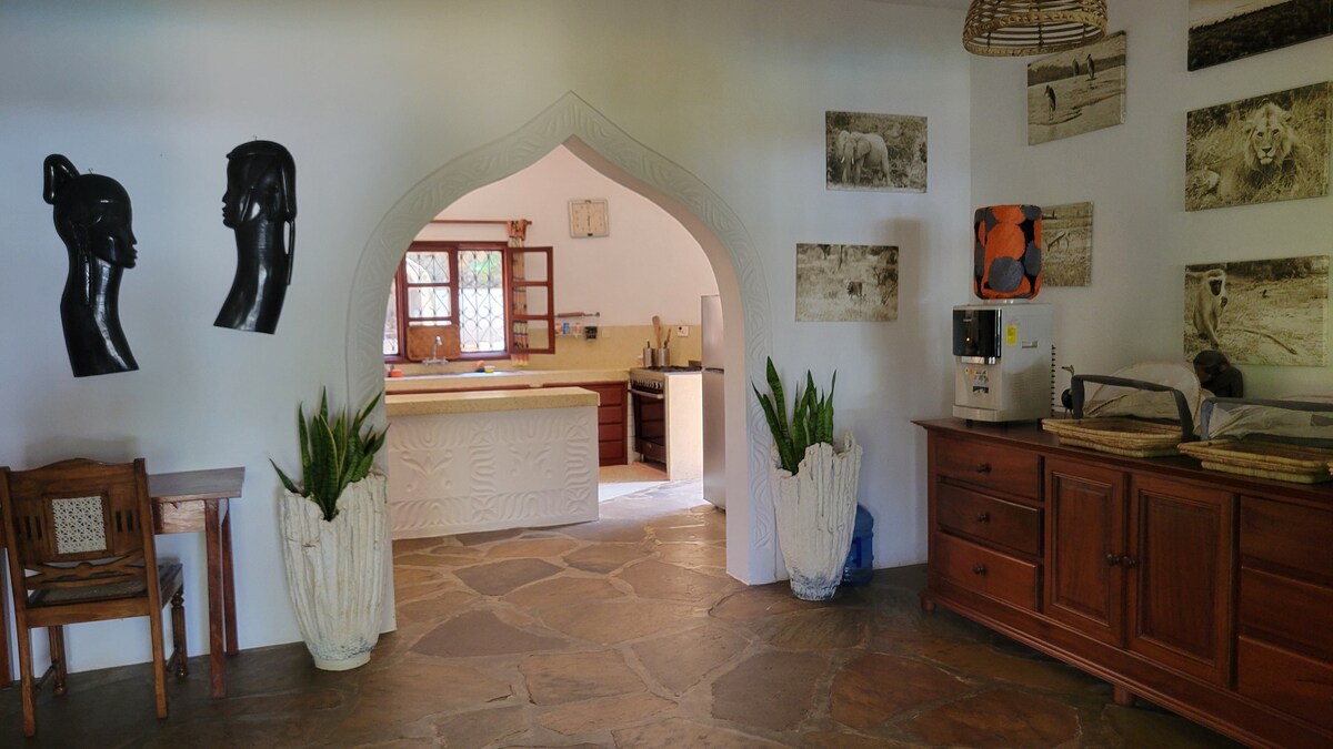 Nyumba Watamu - Villa and Garden - to piękna kenijska willa położona w bardzo spokojnej okolicy, kilka kroków od "centrum" Watamu i plaży Watamu (mniej niż 5 minut spacerem do centrum i plaży, nie ma potrzeby mototaxi!). Willa została stworzona, aby pozwolić łagodnej bryzie przejść przez całą przestrzeń, zapewniając Ci chłód! Jest w pełni umeblowany, aby poczuć się jak w domu, z codziennym sprzątaniem (na życzenie) i środowiskiem dla dzieci, w tym pralnią, aby się zrelaksować i zrelaksować.