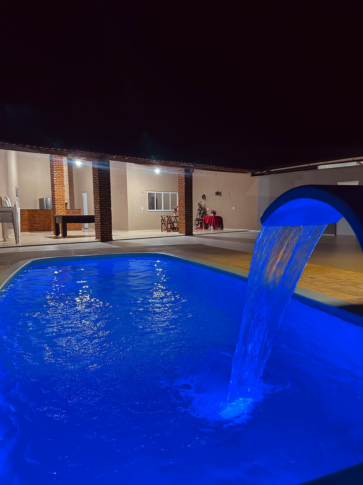 O grande destaque é a nossa área externa espetacular, uma piscinas um delicioso espaço gourmet rústico e coberto. É o cenário ideal para um churrasco piscina para o máximo de diversão! Espaço Gourmet Completo: Churrasqueira, bancada, mesa de madeira rústica e pia. Perfeito para refeições ao ar livre. Áreas de Convivência: Amplo e áreas cobertas para descanso, com móveis externos e jardim.