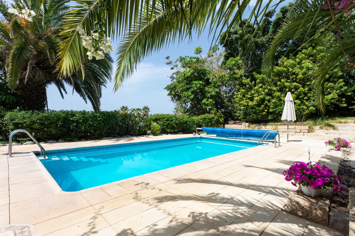 Dom w stylu kanaryjskim z widokiem na morze, tarasem i basenem