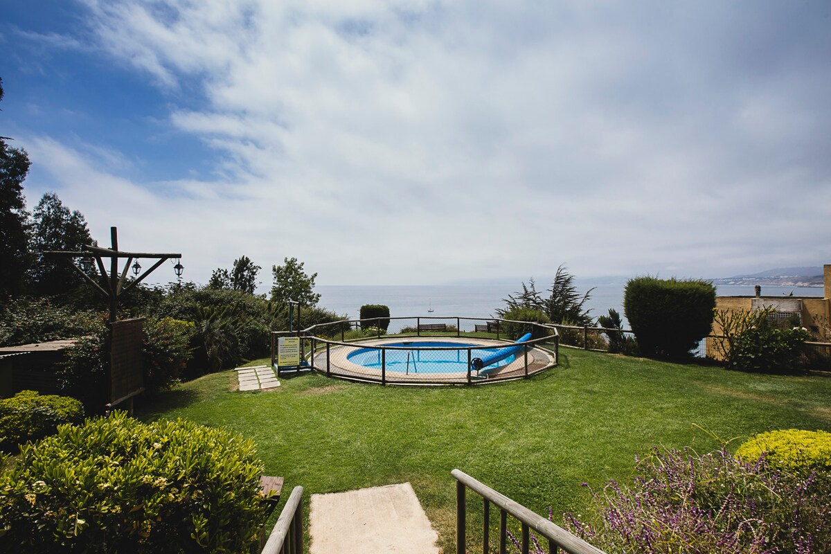 Mieszkanie w pierwszej linii plaży, Spektakularny widok na ocean, otoczenie lasów, niezwykłe piękno. 5 km plaży, którą można przemierzyć na piechotę aż do plaży Luna. W apartamencie: 2 sypialnie, salon, wyposażona kuchnia, Wi-Fi, telewizja kablowa, kuchenka mikrofalowa, radio. Na miejscu: przestrzeń wspólna, boisko sportowe, wiosłowanie, tenis, 5 basenów, SPA, sauna, gry dla dzieci, sala gier, siłownia i grill. Prywatny parking w kondominium, obszerny i strzeżony przez całą dobę. 43 km od Viña del Mar i 10 km od Maitencillo.