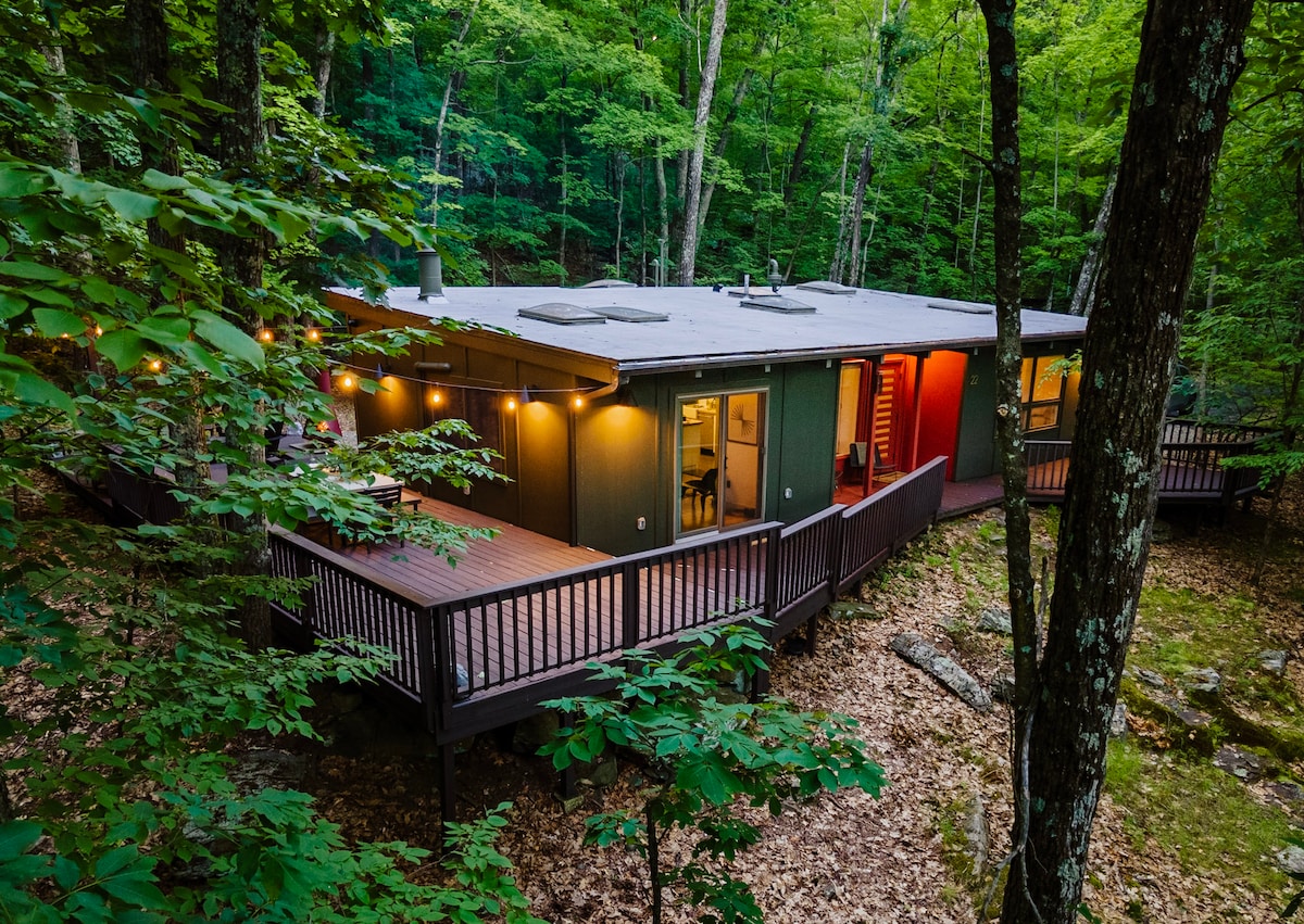 Tej zimy ciesz się śniegiem w prywatnym lesie w Maverick. Jak opisano w magazynach Atomic Ranch i Country Home, Maverick to odosobniony, luksusowo odrestaurowany dom z 1964 roku, umeblowany meblami Eames i innymi kultowymi meblami z epoki. Maverick jest odosobniony, ale zaledwie 5 minut od centrum Woodstock, a także piękne szlaki turystyczne, do biegania i jazdy na rowerze. Dom jest idealnie przygotowany do rozrywki i posiłków zarówno wewnątrz, jak i na zewnątrz.