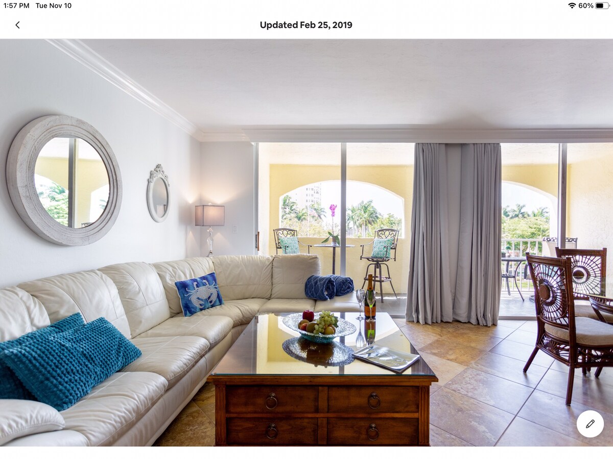 Nasze mieszkanie znajduje się w odległości przejścia dla pieszych od miękkiego białego piasku i zapierającej dech w piersiach turkusowej wody. JW Marriott jest również kilka kroków dalej. Nasz romantyczny wypad ma najnowocześniejszą kuchnię. Lokal jest nieskazitelnie czysty, z dużym ekranem telewizora i luksusowym łóżkiem typu king size. Nasze przestronne mieszkanie i piękny balkon zapewniają miejsce na relaks i delektowanie się kawą lub koktajlami oraz podziwianie naprawdę spektakularnych zachodów słońca.