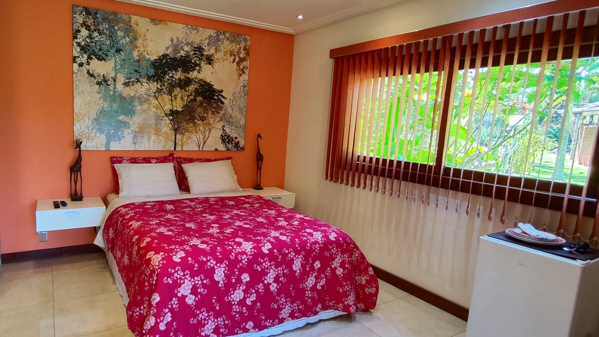 - ORANGE SUITE - Położone w gminie Domingos Martins, Suíça Chalé jest przytulne i przyjazne dla osób poszukujących spokoju i kontaktu z naturą. W apartamencie znajduje się podwójne łóżko typu queen, pościel, ręczniki, szafa, minibar, klimatyzacja dzielona, biurko do pracy i ekspres do kawy. Ponadto oferujemy sztućce, talerze i szklanki. Na balkonie przed apartamentem znajduje się stół do małych posiłków. Łazienka jest ekskluzywna i bardzo przestronna.