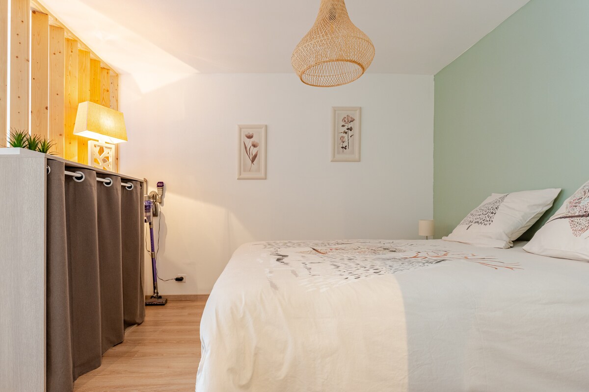 Nasze nowo odnowione miejsce o powierzchni 33 m² jest klimatyzowane i znajduje się w odległości krótkiego spaceru od uroczego, zabytkowego centrum Dijon. W oddzielnym małym budynku za naszym domem będziesz mieć własny salon/kuchnię, oddzielną sypialnię i łazienkę. Przed domem znajduje się bezpłatny parking publiczny. Będziesz tuż obok Palais des Congrès i Audytorium, a krótka przejażdżka tramwajem zabierze Cię na dworzec kolejowy, uniwersytet i do szpitala. W pobliżu supermarkety i inne sklepy. Nous parlons également français.
