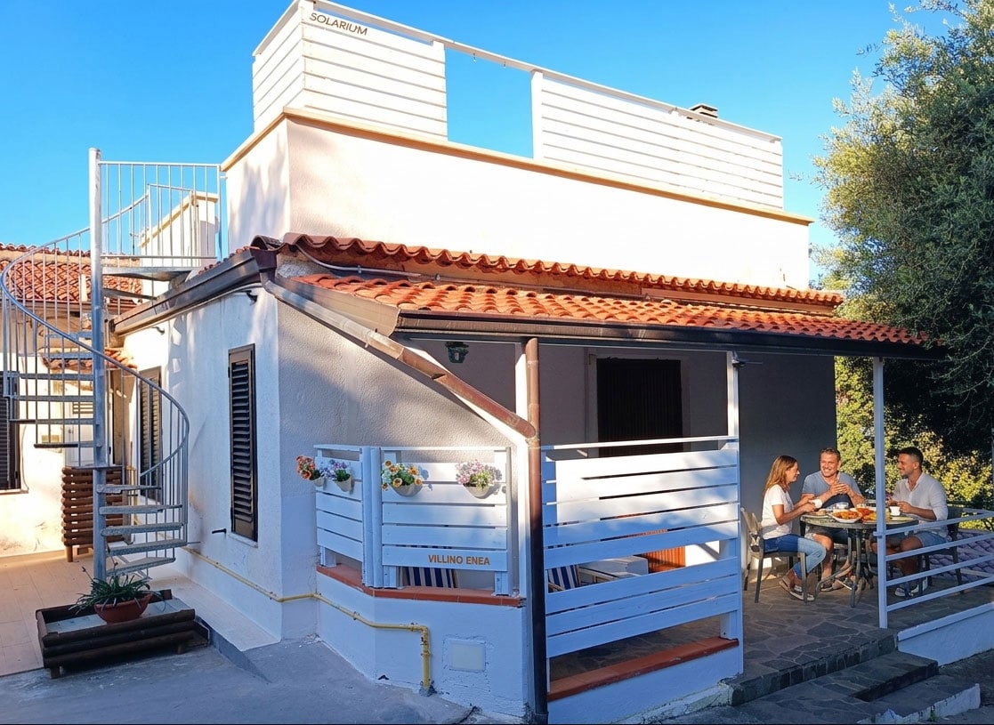 Uroczy, wolnostojący domek z widokiem na morze, w całości pokryty lokalnym kamieniem. Jednostka o powierzchni około 25 metrów kwadratowych składa się z sypialni z łóżkiem małżeńskim, łazienki i małej, funkcjonalnej i jasnej kuchni, wyposażonej w płytę indukcyjną, lodówkę, czajnik, kuchenkę mikrofalową, toster, stolik i dwa krzesła. Na przyległym terenie znajduje się pergola, z której można podziwiać wspaniałą panoramę. Prywatny parking na terenie posesji i bezpłatne Wi-Fi.