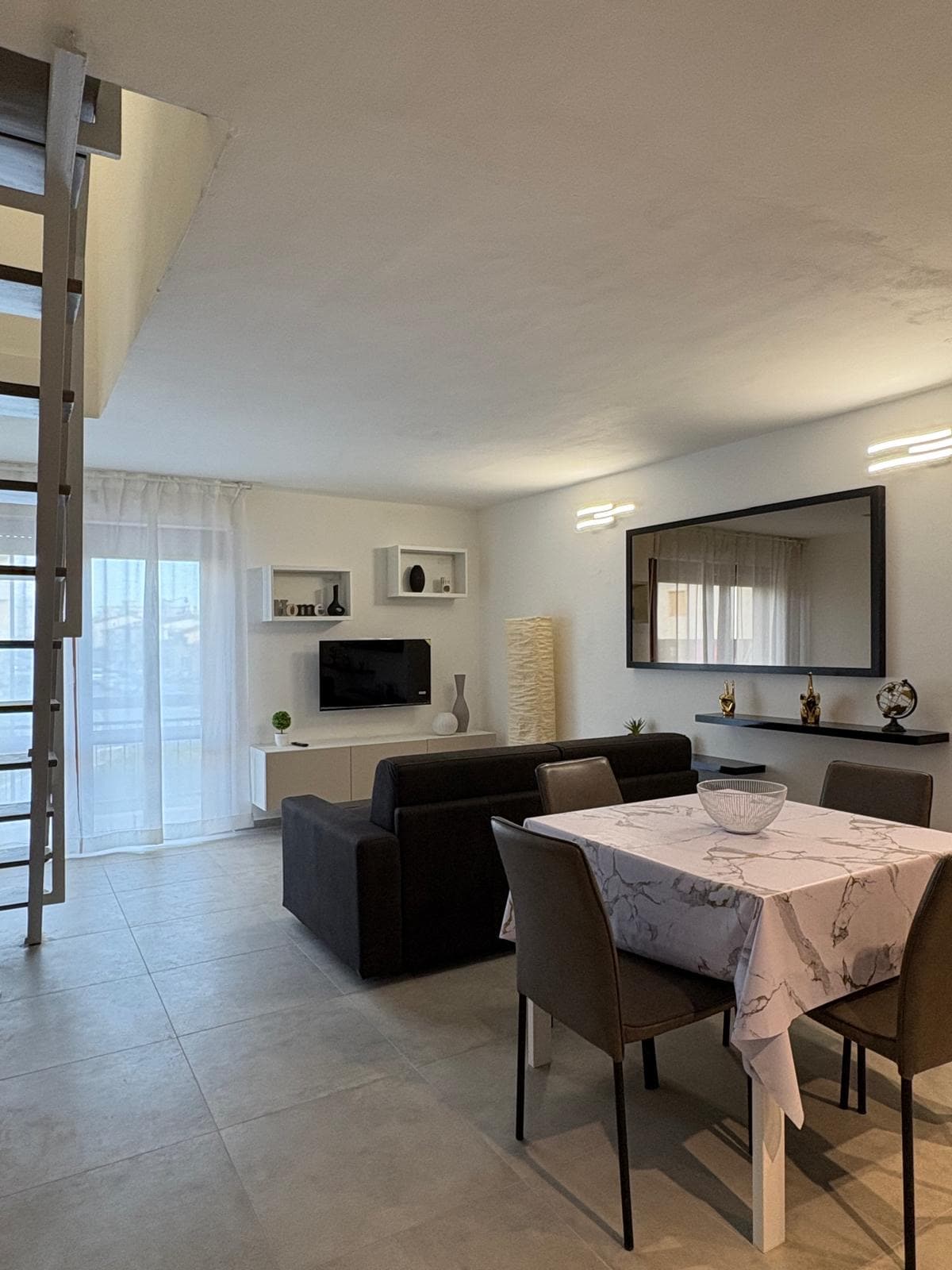 Całkowicie odnowiony i umeblowany apartament o powierzchni 60 m2 pod koniec maja 2018 roku w stylu morskim. Składa się z otwartej przestrzeni dziennej, sypialni dwuosobowej i sypialni z 2 łóżkami, łazienki z prysznicem z chromoterapią, drugiej łazienki, dużego balkonu i prywatnego garażu. Położony w bardzo spokojnej okolicy i otoczony zielenią, znajduje się 5/10 minut spacerem od morza. Wi-Fi, inteligentny telewizor z Netflixem, klimatyzacja, kuchenka mikrofalowa, kuchenka indukcyjna, telefon, rowery itp.
