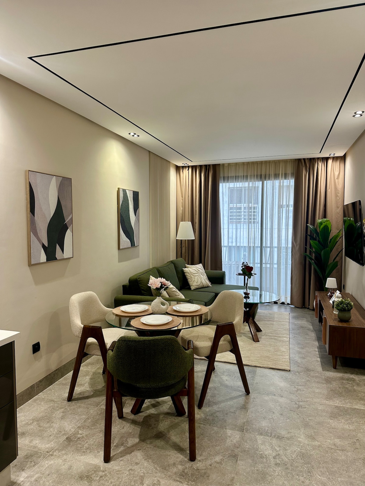Butterfly 703🦋, oaza spokoju, gdzie elegancja nowoczesnej rezydencji łączy się z komfortem 5-gwiazdkowych hoteli w samym sercu Casablanki! Zrelaksuj się w przestronnym salonie o nowoczesnym wystroju, wyposażonym w 55-calowy telewizor Smart TV z Netflix i IPTV, który zapewni Ci wieczory pełne relaksu. Pokój, prawdziwie przytulne gniazdko, obiecuje spokojne i regenerujące noce. ☁️ Z prywatnego balkonu możesz podziwiać wspaniałe zachody słońca nad miastem, które sprawią, że każda chwila Twojego pobytu będzie niezapomniana! ✨