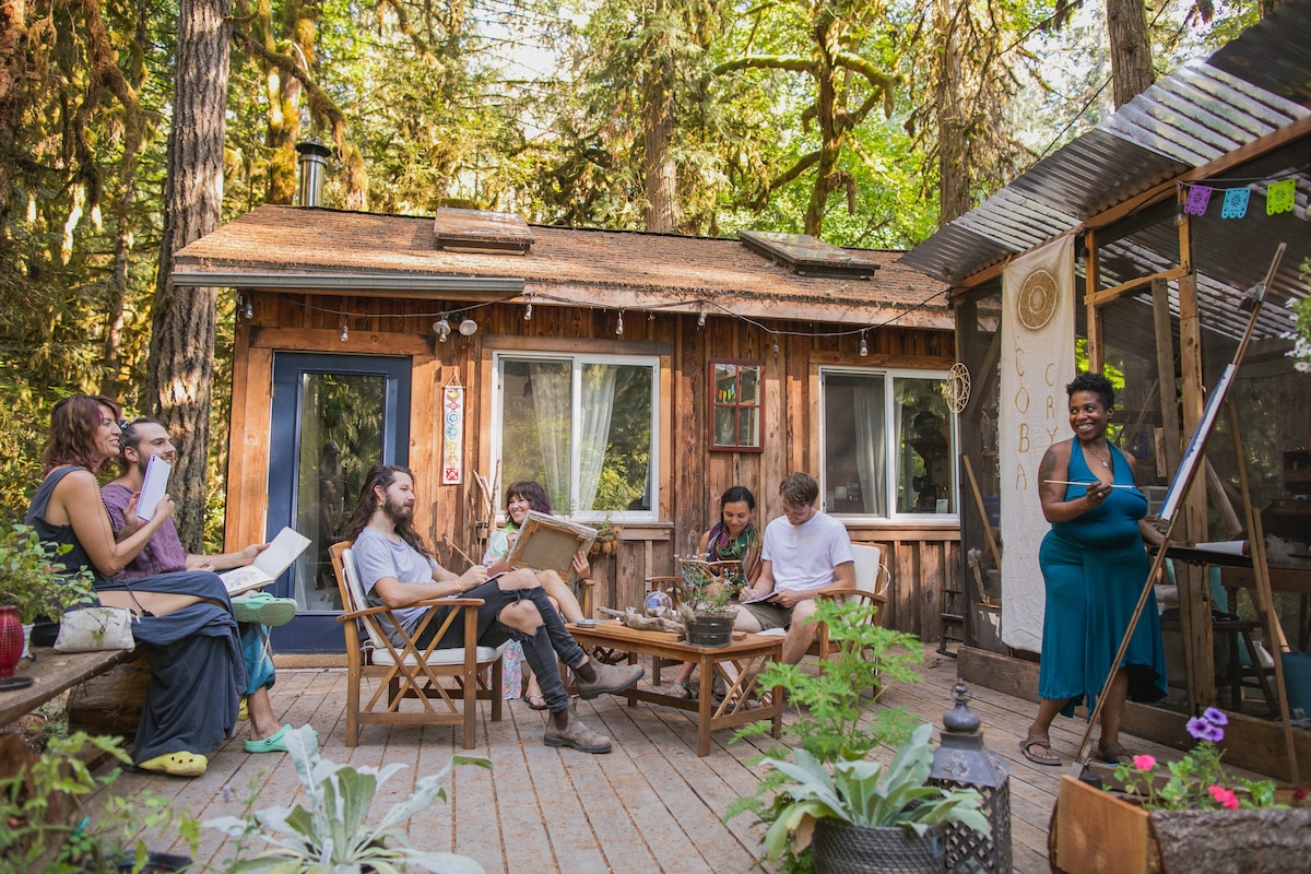 An Entire Wilderness Retreat Center All To Yourselves! The Main Cabin, The Caretaker's Cottage, Four Sleeper Cabins, A Communal Lodge, Two Tiny Homes and a Cedar Bath House with Cedar Hot Tub and 12 person Sauna. Oh, and 200 acres of old growth forest with trails, foraging fun, a creek and a river, ancient trees, fairy and gnome homes, and more... come explore our magical forest! Great for hosting parties, no noise ordinances - we have professional speakers, a DJ Booth in a tree stump & more.