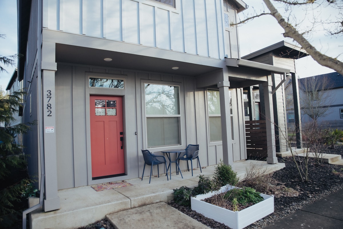 Ustronna, wypełniona światłem chatka z nowoczesnym klimatem gospodarstwa z widokiem na prywatne jezioro. Położona 1 milę od Mt. Hood National Forest, z wieloma możliwościami wędrówek, wiosłowania, wędkowania i jazdy na rowerze! Udogodnienia na miejscu obejmują kajaki, pawilon na świeżym powietrzu z dużym kamiennym kominkiem, ścieżki spacerowe i mnóstwo gier na trawniku. Domek może pomieścić cztery osoby, z łóżkiem typu queen na poziomie głównym i łóżkiem typu queen na poddaszu z dostępem do drabiny. Salon zapewnia wrażenia kina domowego. Aneks kuchenny i grill gazowy na świeżym powietrzu.