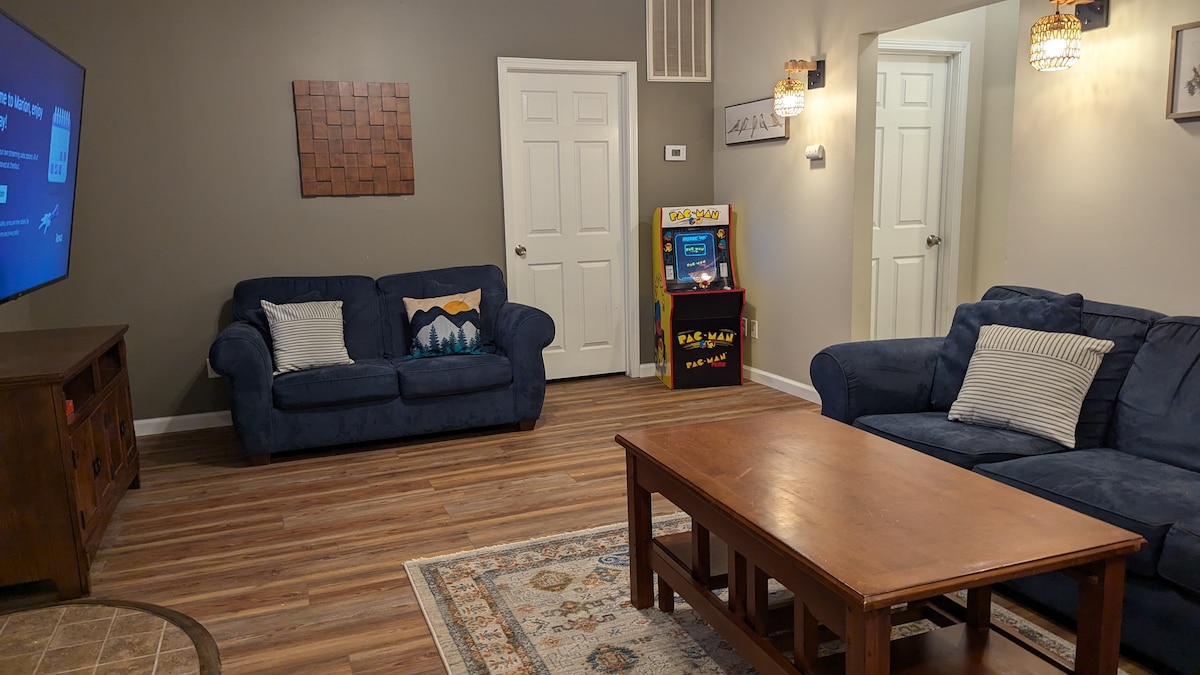 Szukasz odnowionego apartamentu w pobliżu wszystkiego, czego potrzebujesz? To jest to…w Carterville! Niedawno odnowione, 2 sypialnie, 1 łazienka. Przyjazne dla zwierząt! Niezależnie od tego, czy podróżujesz służbowo, przyjeżdżasz z rodziną, czy po prostu chcesz się wybrać na małą wycieczkę! 15 minut między SIU/Marion. W małym miasteczku ze świetnym sklepem z antykami, piekarnią, lodziarnią i pizzerią! Łóżka typu queen, pełna łazienka, w pełni zaopatrzona kuchnia. Mamy również dwa domki na szlaku winnym w południowym Illinois. Parking dla kamperów/łodzi!!!