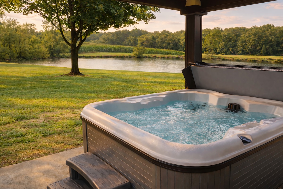 Pond & Hot Tub | Timber Oaks Vacation Rentals