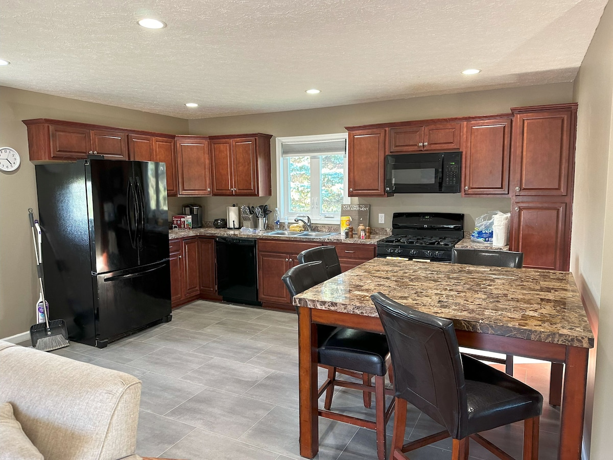 Położony w samym sercu Victor, NY, ten w pełni odnowiony apartament jest koniecznością! Położony na północ od jeziora Canandaigua, na południe od miasta Rochester i 5 minut od I-90! Ten uroczy apartament zawiera jedną pełną łazienkę/pralnię, otwartą kuchnię/salon, wyspę kuchenną z nowymi urządzeniami ze stali nierdzewnej i blatem kwarcowym. Dwie sypialnie, główna z łóżkiem typu king, a druga z dwoma pełnymi łóżkami. Apartament znajduje się POWYŻEJ/TYŁU głównego domu wiktoriańskiego.