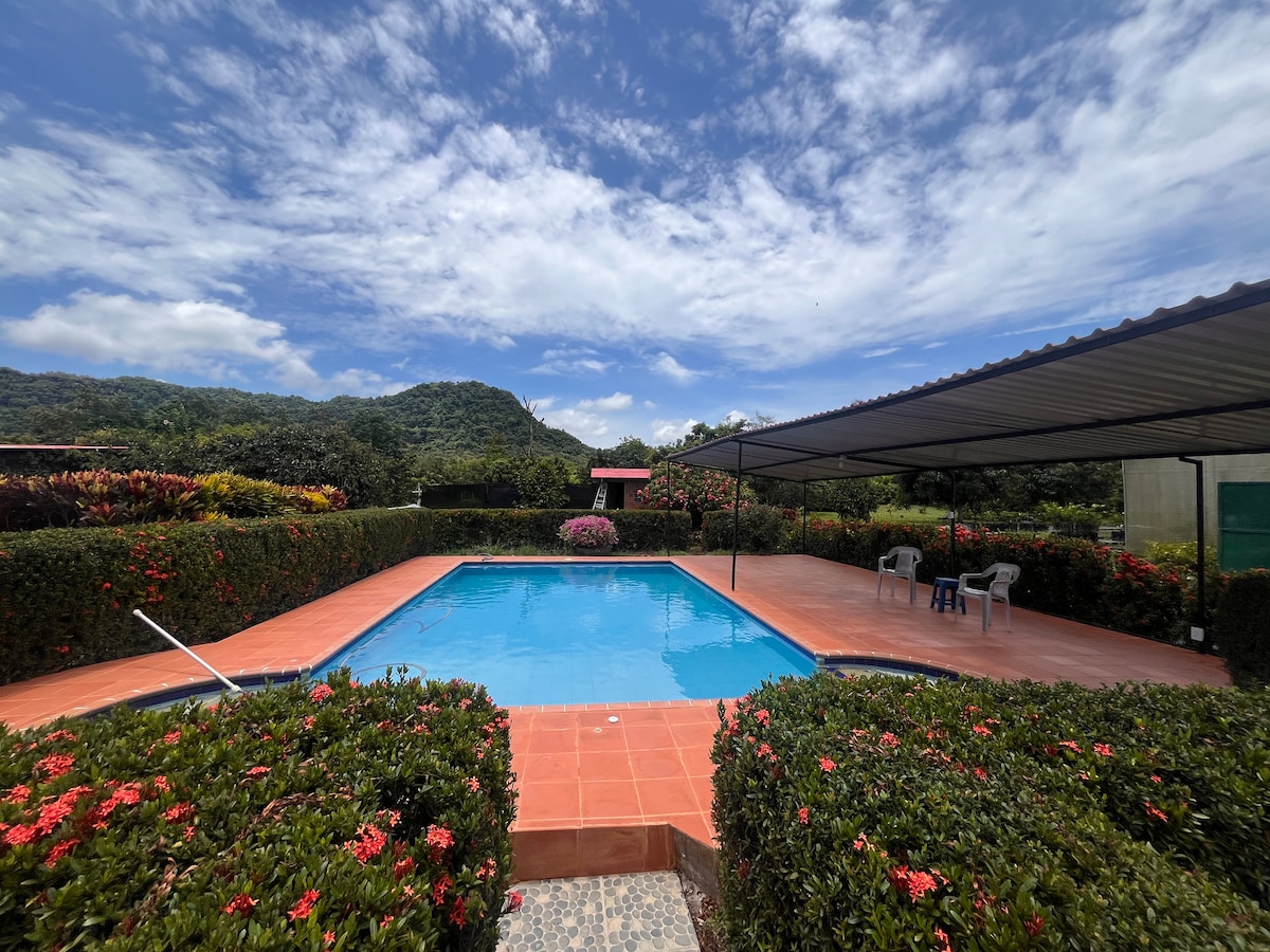 Oferowany przez nas dom znajduje się na terenie prywatnym, gdzie można wchodzić w interakcje z naturą. Jest to bardzo przytulne miejsce, gdzie można cieszyć się słońcem i orzeźwiać się w basenie, a także grillować lub przygotować pyszne sancocho. Odpocznij w komfortowych pokojach i ciesz się spokojem oraz krajobrazem z widokówki. Nie oferujemy zmiany pościeli ani ręczników, z wyjątkiem długich pobytów. W łazienkach zostawiamy mydło i papier, a przy przyjeździe żel i alkohol.
