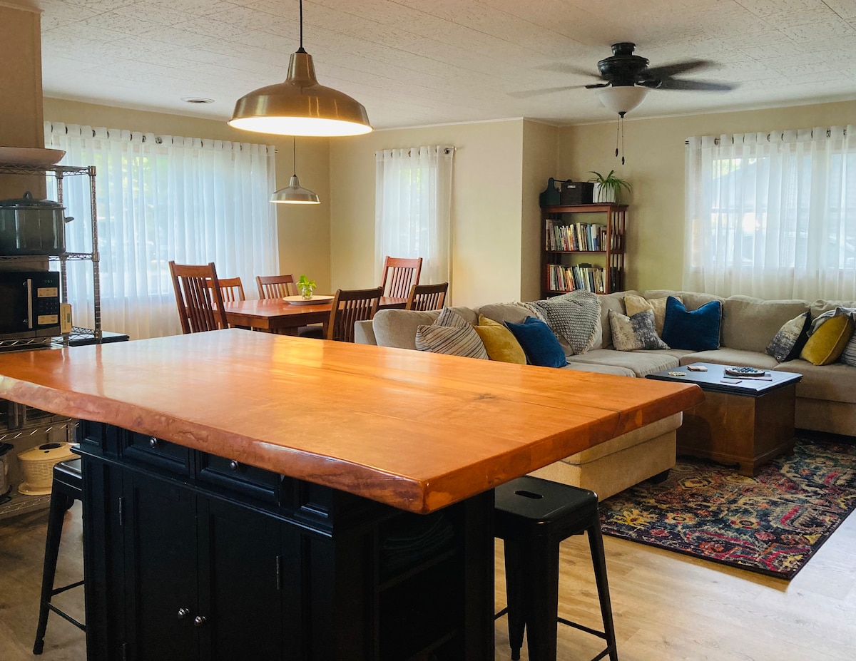 Wzywamy grupy, które kochają przebywać na świeżym powietrzu o każdej porze roku! Idealne miejsce dla grup z dużą ilością miejsca wewnątrz i na zewnątrz. Mamy 3 jadalnie (1 na zewnątrz), 2 salony i „barakę” z telewizorem, aby wysłać dzieci do zabawy! Dom jest w pełni zaopatrzony w ręczniki kąpielowe i plażowe oraz wszystko, czego potrzebujesz w kuchni. Dodatkowo... cornhole, 2 deski do paddleboardingu, 2 kajaki, 2 kajaki, łódź wiosłowa i brodzik! NOWOŚĆ jesienią 2024 roku: dodaliśmy nowy stół do jadalni dla dziesięciu osób, nowe materace i nową pościel!