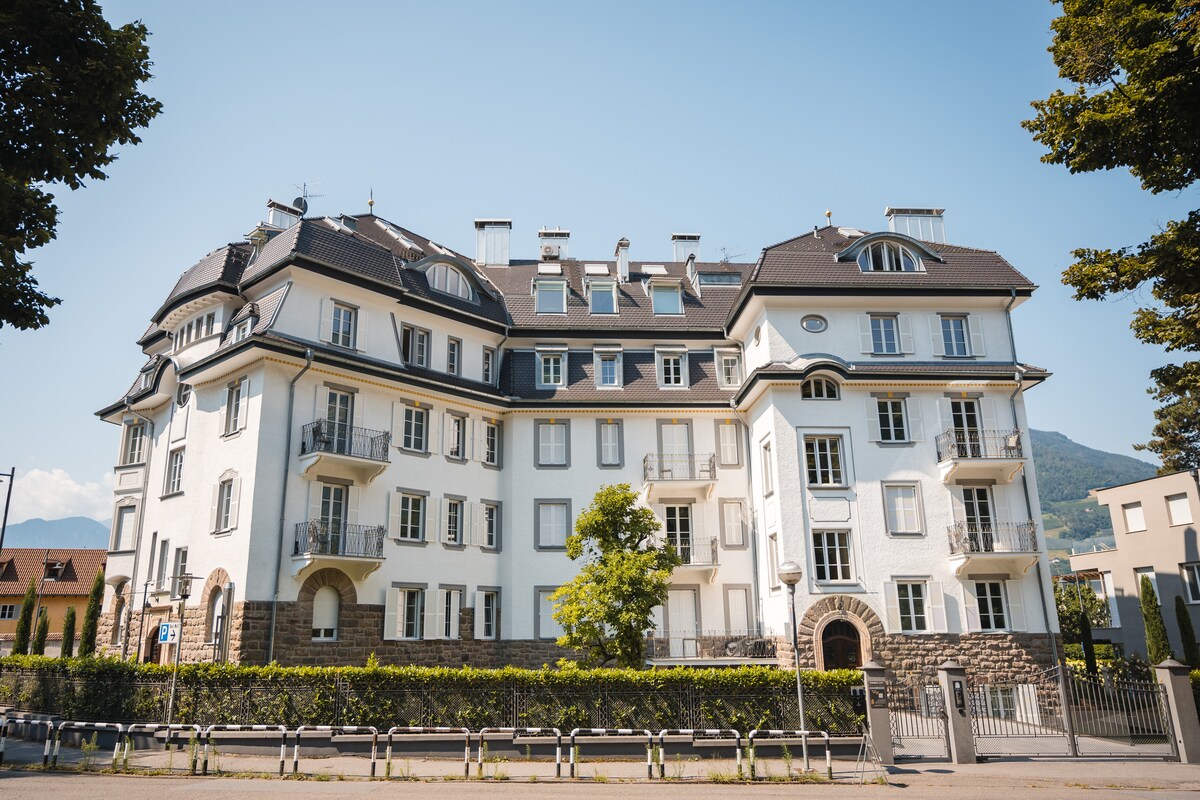 Przestronny, nowo wyremontowany apartament na ostatnim piętrze willi fin-de-siècle. Zbudowana w 1907 roku, Villa "Sonnblick" (angielski: słoneczny widok) jest jednym z najpiękniejszych budynków na górze Zeno. Rezydencja oferuje południowy balkon i imponujący panoramiczny widok na Merano i Valle d 'adige. Pomimo tego, że willa znajduje się na wzgórzu, dotarcie do centrum Merano zajmuje tylko 15 minut pieszo.