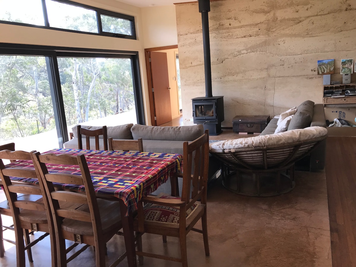 Jasna, przestronna drewniana chata, na pięknej 11-akrowej posesji poza siecią, położona w dziewiczym Parku Narodowym Monga. Prywatna chata znajduje się oddzielnie od głównego domu na cichej posesji, zaledwie 16 minut od tętniącego życiem miasta Braidwood. Znajduje się obok potoku Jembaicumbene, jest otoczona lasem i pełna dzikiej przyrody, ptaków i nietkniętego buszu. Są tu szlaki do wędrówek przez las deszczowy, gdzie masz szansę zobaczyć wombaty, jeżozwierze, a jeśli masz szczęście, spektakularnego ptaka lirowatego.