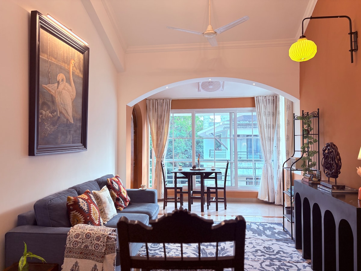 Witaj w Bohobnb, gdzie wygoda spotyka się z artystycznym urokiem! Nasz dwupoziomowy apartament z 1 sypialnią, położony w samym sercu Siolim, oferuje wyjątkowy pobyt z poddaszem i prywatnym tarasem. Otoczony bujną zielenią, ten dom zapewnia piękne widoki, które zapewniają ciszę i spokój w zamkniętej społeczności ze wszystkimi nowoczesnymi udogodnieniami, w tym windą, basenem, szybkim Wi-Fi. Niezależnie od tego, czy relaksujesz się na strychu, czy chłoniesz słońce na prywatnym tarasie, każda chwila obiecuje spokój i wygodę.