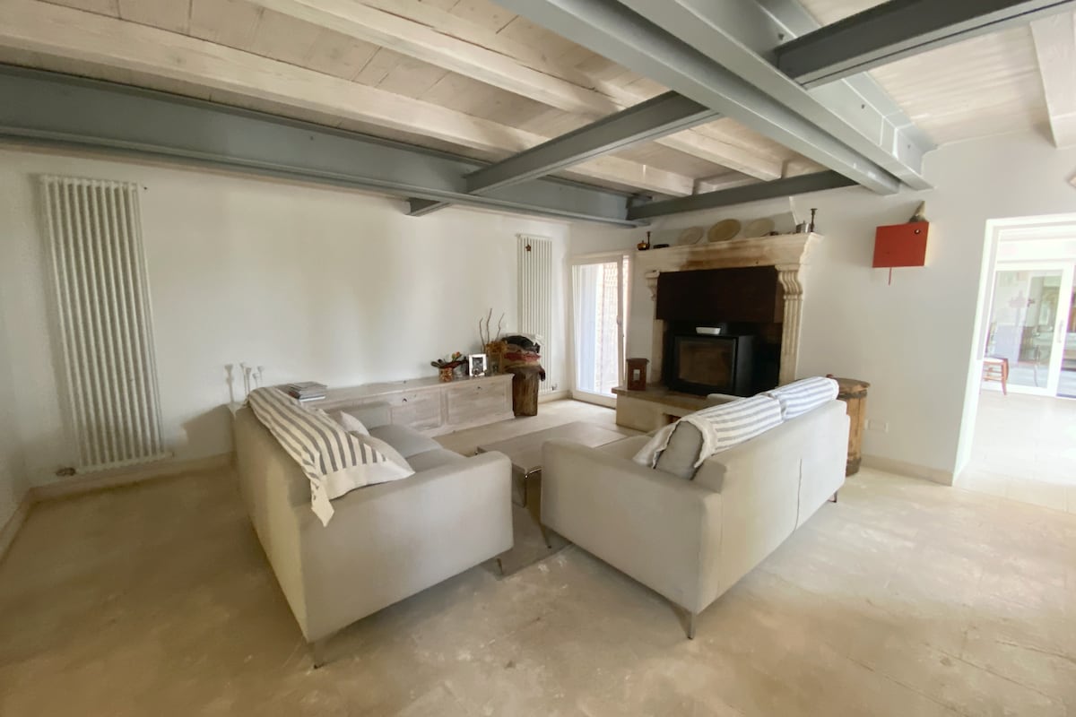Dom zanurzony w zieleni wzgórz Berici między drzewami oliwnymi i winnicami, z pięknym widokiem na zamki Julii i Romea w Montecchio Maggiore. Idealne rozwiązanie dla tych, którzy chcą być otoczeni naturą, ale tylko 8 km od targów i miasta Vicenza. Stąd zaczynasz również piękne spacery po wzgórzach, niezwykłe trasy z MTB, kilkaset metrów dalej znajduje się AltaVia dei Colli Berici, pierścień szlaków turystycznych, który rozwija się na około 130 km szlaków.