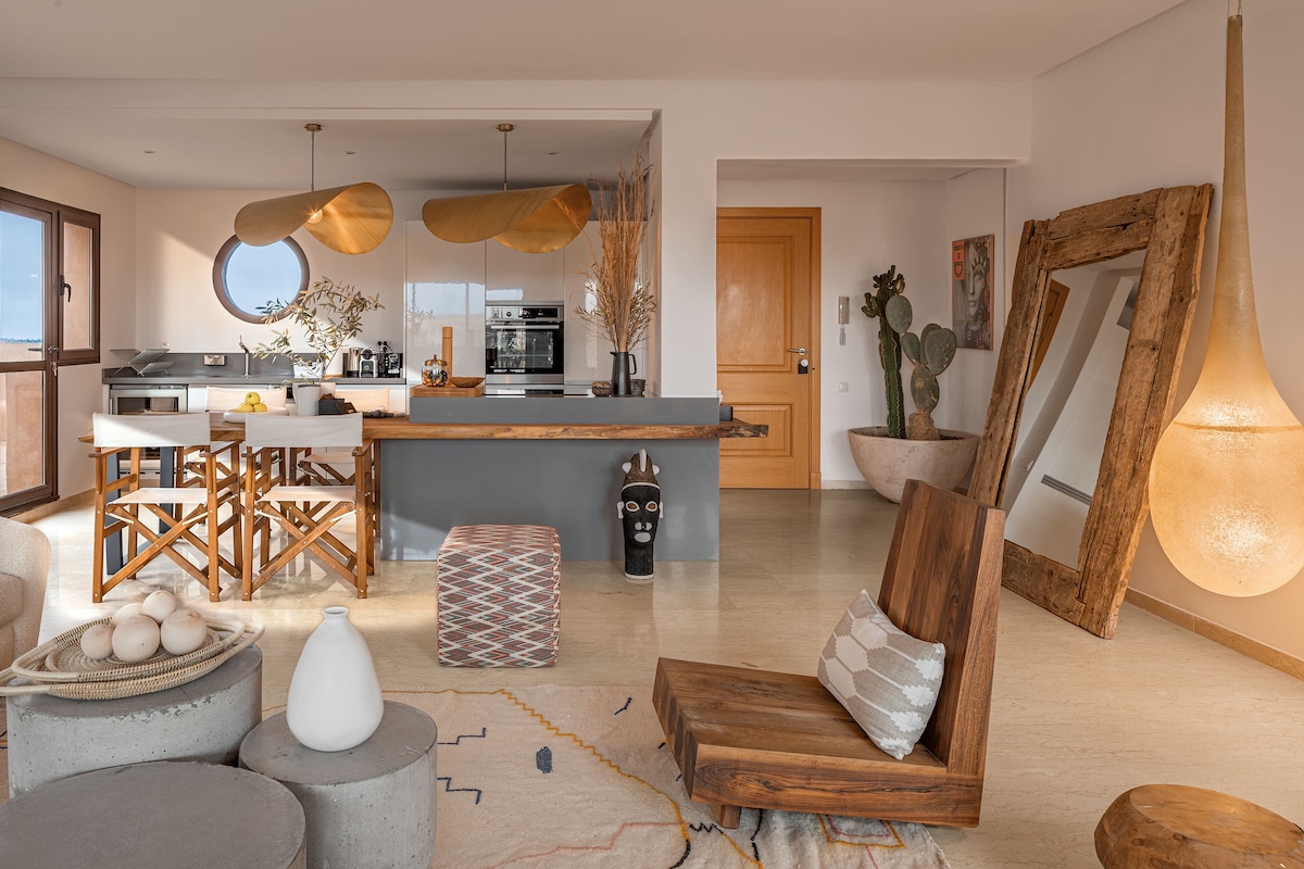 Luksusowy apartament z 2 sypialniami, oszałamiającym golfem i widokiem na góry Atlas Witaj w swojej stylowej oazie, pięknie zaprojektowanym apartamencie z 2 sypialniami i 2 łazienkami, który na nowo definiuje luksusowe życie. Ta wykwintna rezydencja oferuje zapierające dech w piersiach widoki na bujne pole golfowe, lśniący basen i majestatyczne góry Atlas. - Przestronne mieszkanie: ciesz się otwartym układem, który płynnie łączy salon, jadalnię i kuchnię, idealną do rozrywki lub relaksu.