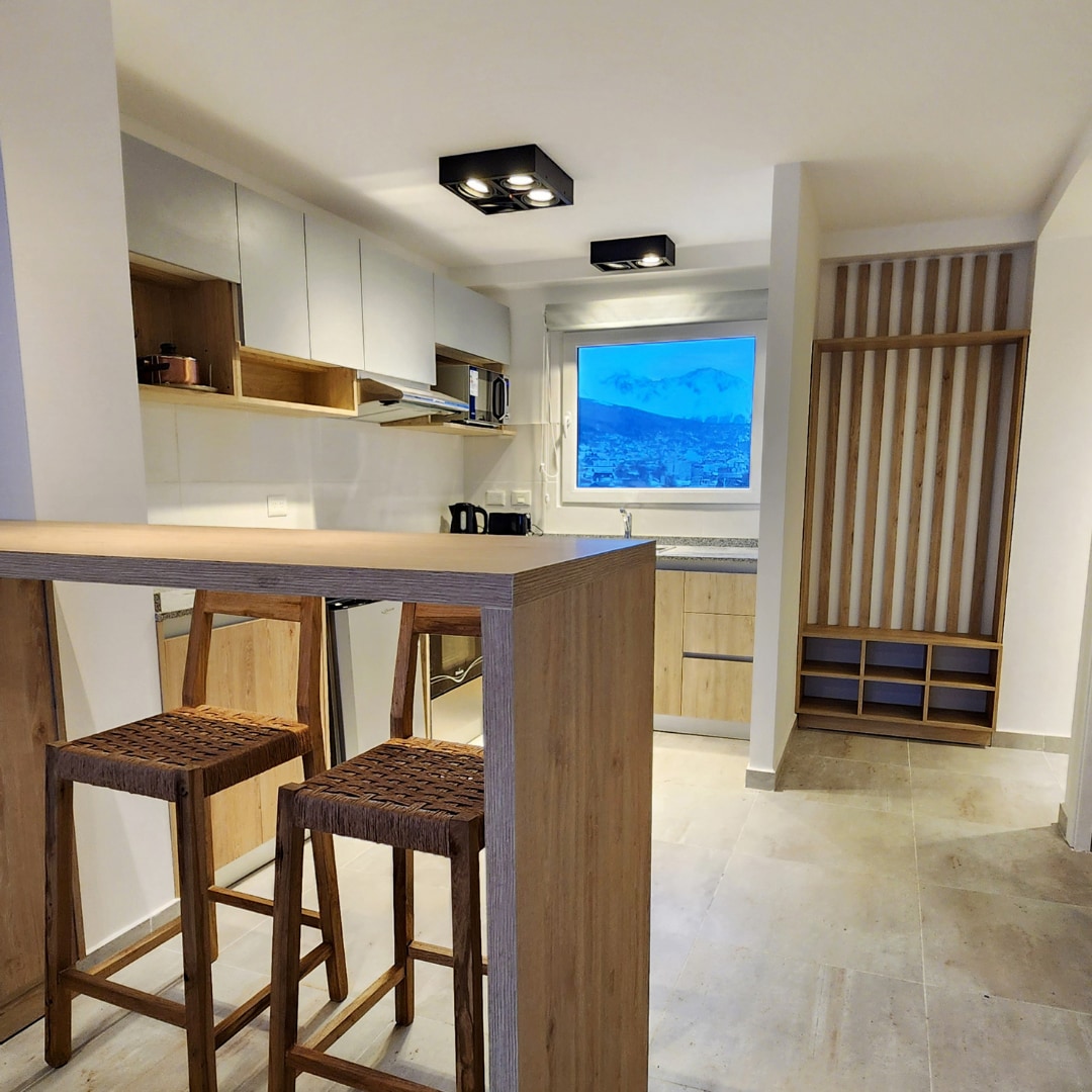 Este lujoso y amplio dpto. cuenta con dos dormitorios, uno con cama matrimonial y otro con dos camas individuales, la ropa de cama es de primera calidad y en ambas habitaciones hay smart tv. Dispone de una amplia cocina comedor totalmente equipada con una delicada vajilla, en este ambiente hay un smart tv con cable. Cuenta con 1 baño completo con bañera y completan la propiedad con un amplio living. Desde su ventanal podrás disfrutar de magnificas vistas del Canal Beagle y las Islas Navarino.