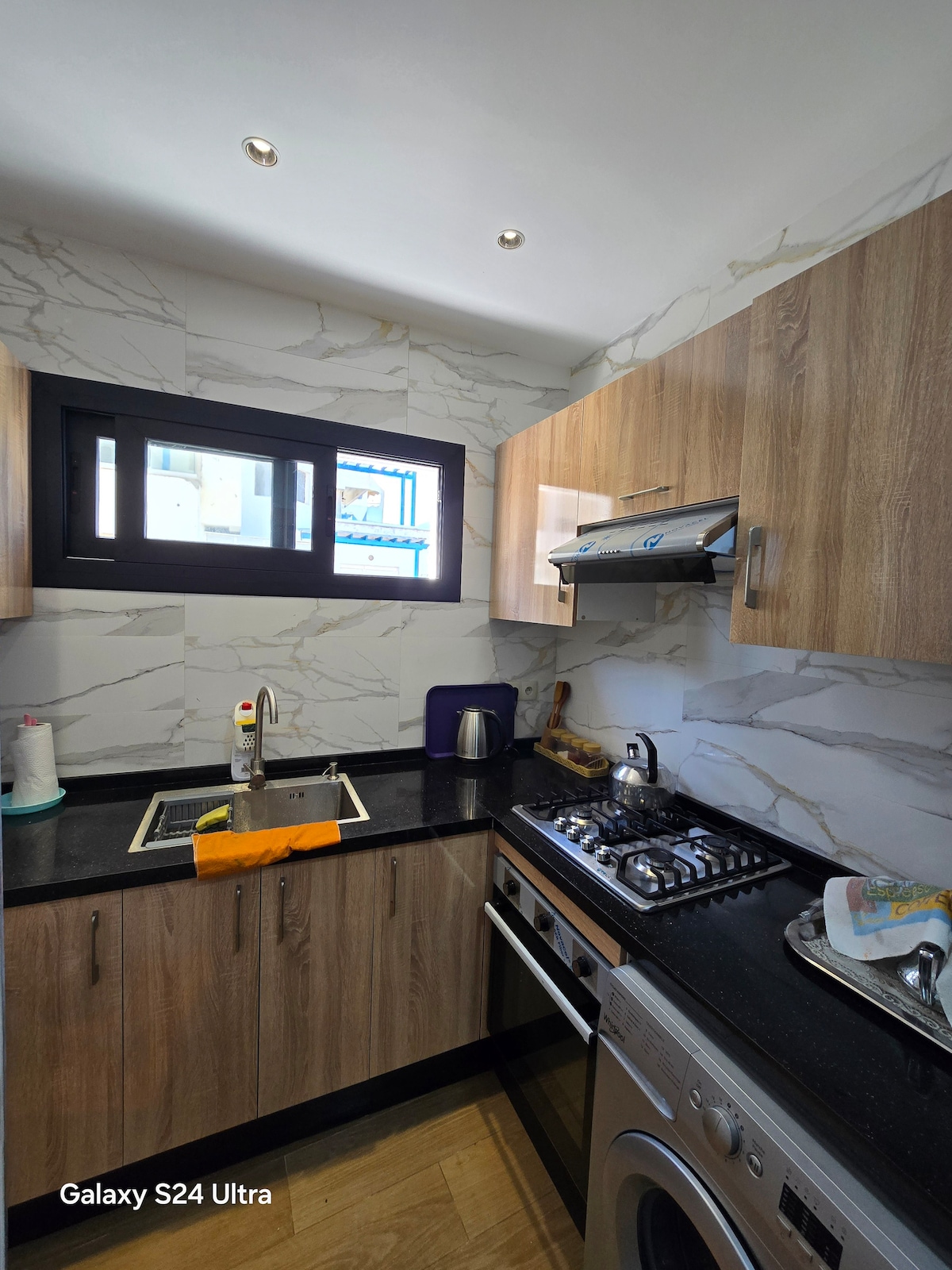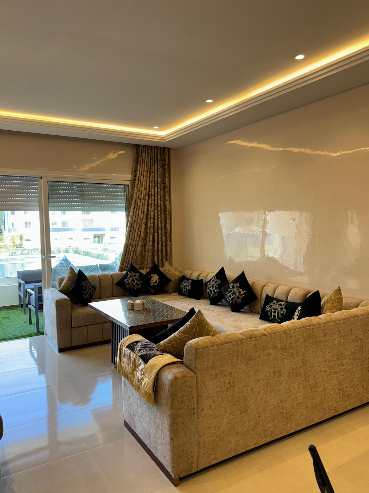 ✨Apartament Panoramiczny w Les Jardins Bleus charakteryzuje się nowoczesnym i eleganckim wystrojem, a każdy element został starannie zaprojektowany, aby zagwarantować niezapomniane wrażenia Centralne ✨położenie ✅ Apartament z panoramicznym widokiem na morze i w pobliżu: ✅ 1 min od plaży Martil 🏖 i słynnej Corniche ✅ 5 min do plaży Cabo Negro 🏝 ✅ 4 minuty od Ikea i KFC 🍗 ✅ 6 minut od Marjane i McDonald's 🍟 ✅ 1 min do restauracji, kawiarni, sklepów