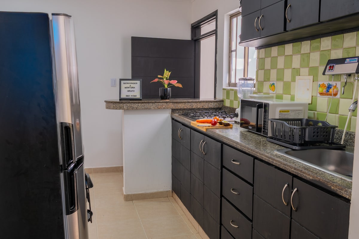 Moderno y acogedor apartamento de 2 habitaciones totalmente equipado, ideal para familias, parejas o grupos pequeños. Ubicado a solo 3 minutos del aeropuerto, ofrece comodidad y fácil acceso a la ciudad. El apartamento cuenta con: 🏠 2 habitaciones confortables 🍳 Cocina equipada con todos los utensilios 🛋️ Sala amplia y luminosa con TV y WiFi 🚗 Parqueadero disponible Ya sea que viajes en familia, en pareja o por trabajo, aquí encontrarás un lugar tranquilo y cómodo para disfrutar y relajarte.
