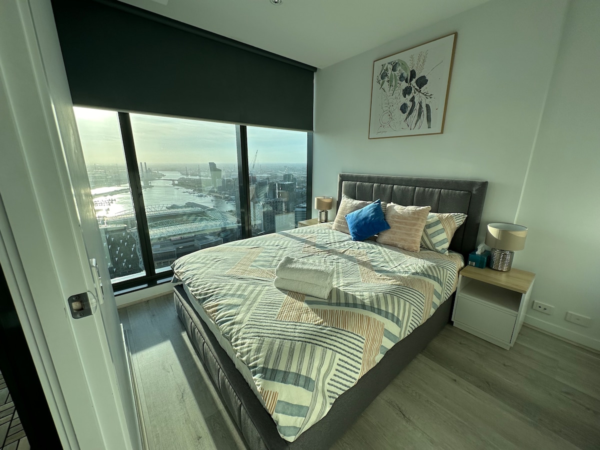 Tętniące życiem mieszkanie z 1 sypialnią i 1 łazienką z niesamowitym widokiem na morze i rzekę w mieście, szczególnie wspaniałe widoki nocne, ponieważ znajduje się na wysokim piętrze. Ten wspaniały apartament jest urządzony w nowoczesnym, luksusowym stylu i oferuje ciepły wypoczynek po zakupach lub rozrywce na światowej klasy Collins st. Znajduje się on w pobliżu stacji Southern Cross i autobusu wahadłowego na lotnisko w odległości spaceru. W pobliżu znajduje się szeroka gama wysokiej klasy hoteli i restauracji. Szybkie Wi-Fi. W pełni wykorzystaj luksusowe udogodnienia, takie jak siłownia, basen.