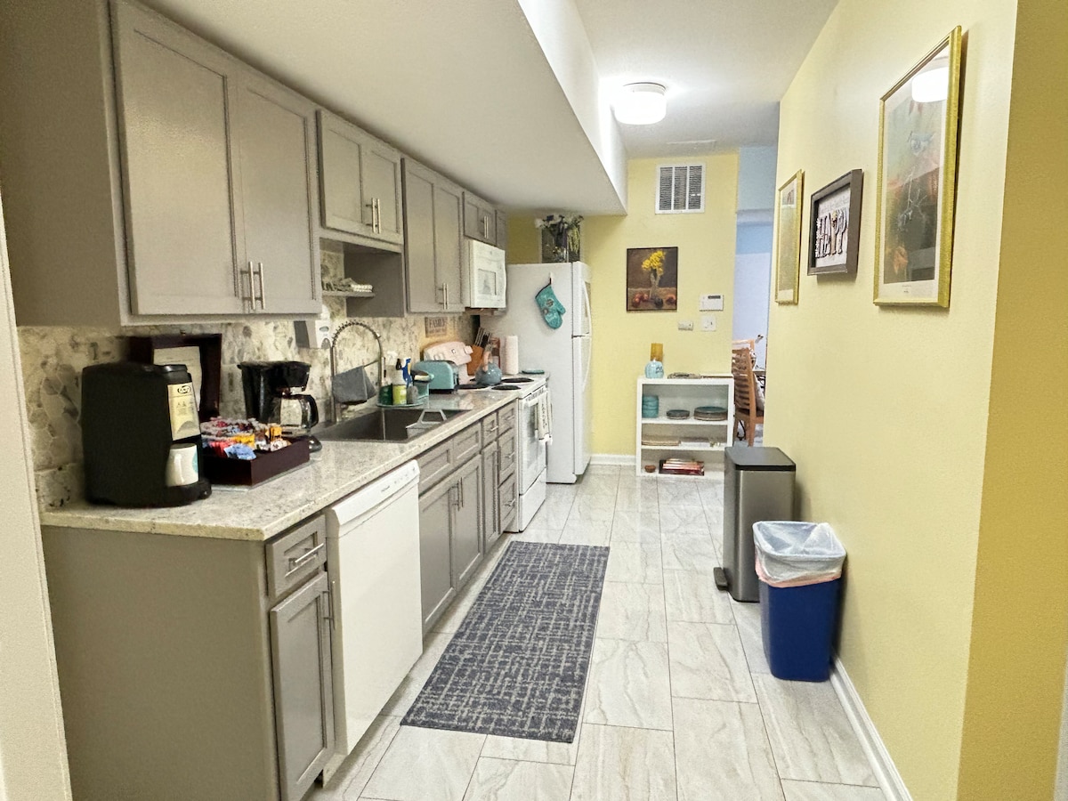Living Room amenities include a Smart TV and an Amazon Fire TV Stick. Fully equipped kitchen and cooking essentials. Lovely patio with seating area and herb garden. Comfortable bed and quality linens. Keurig coffee maker with coffee and tea provided. You have your own private entrance and patio area on an entire different side of the house so your experience can be as private as you like. The entire apartment which includes: washer/dryer, fully equipped kitchen and patio area. Your host will be available for anything you need during your stay. My daughter/co-host, Bernadette, a young D.C. professional, can also answer any questions about the D.C. area, restaurants and other cool places to go. The apartment is in a quiet suburban neighborhood with easy access to the Washington area. It's a short walk to the FDA. Downtown Silver Spring is nearby, with its many restaurants, bars, Fillmore music venue, Ellsworth Dog Park, and a movie theater. The National Archives, University of Maryland College Park and UMUC are just few miles away. A Ride-On bus stop is located on the same block as the apartment. A Metro bus stop is 5 minute walk. Silver Spring Metro Station is about 4 miles away. There are a few parking garages at the Silver Spring Metro Station if you choose to drive there and then hop on the metro. Free parking on weekends and holidays at all Montgomery County Parking garages (some lots and street parking may require payment on Saturday). You could also Uber/Lyft to the metro station or all the way into the city (great option esp if you're splitting fare).