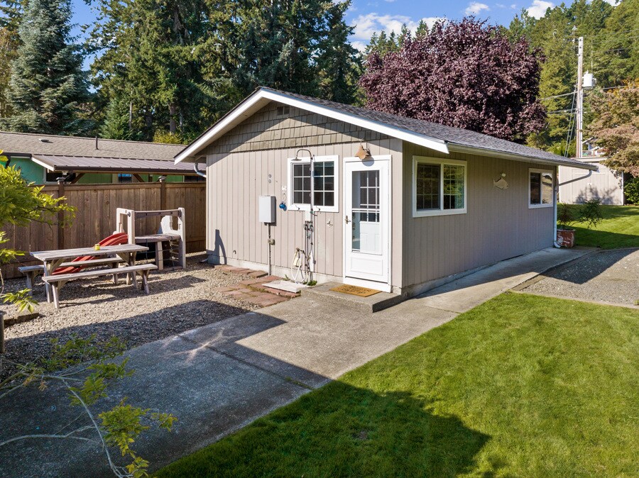 Beautiful remodeled studio surrounded by ocean views. Direct access to the beach. Bring your kayaks, paddle boards & enjoy the beach! We regularly see seals, otters & if your lucky orca whales! There’s a boat launch about a mile down the street Enjoy the picnic table & fire pit directly outside the front door! You have access to couch & games in the garage. DVD & tv but NO Wi-Fi. Bunkbed/ trundle. 2 twins 1 king. Relax & enjoy!