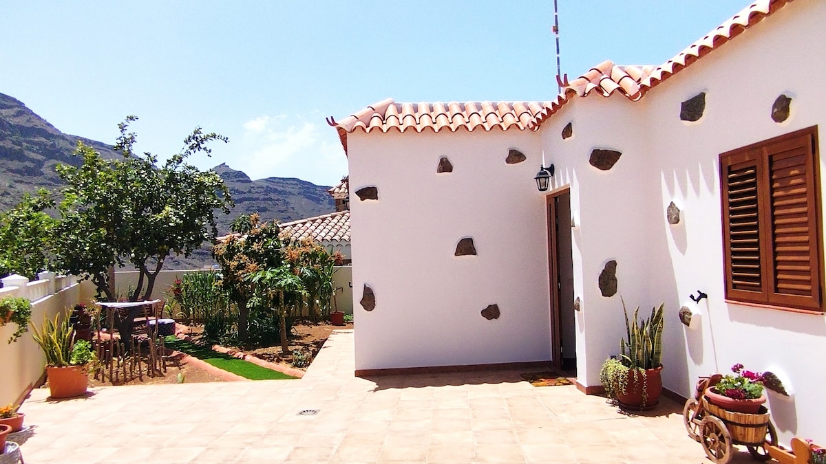 Piękny, odnowiony i przytulny dom oferujący wszystkie udogodnienia, których potrzebujesz podczas wakacji. Dwie sypialnie dla 4 osób, w pełni wyposażona łazienka i kuchnia oraz salon z telewizorem i kanałami w różnych językach. Wi-Fi, taras i przestrzeń na świeżym powietrzu z grillem, palmami i drzewami owocowymi. Łatwy dostęp do parkingu. 20 minut jazdy od Playa del Inglés lub północnej części wyspy (San Bartolomé de Tirajana, Tejeda...). To idealne miejsce na odpoczyszczenie umysłu i ciała oraz cieszenie się przyrodą.