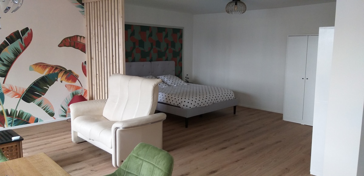 Wspaniały nowoczesny, jasny i przytulny apartament na pierwszym piętrze całkowicie odnowionej stodoły. Położone w spokojnej okolicy, w samym sercu Ardenów, 100 m od sklepów spożywczych, 200 m od centrum handlowego. Idealne dla par. Wyposażona kuchnia, oddzielna łazienka z włoskim prysznicem i toaletą. Duży taras o powierzchni 25 m2 ze stołem dla 2 osób i meblami ogrodowymi (latem). Pralka wspólna dla wszystkich apartamentów. Podwójne łóżko 160 + rozkładana sofa (1 osoba dorosła lub 2 dzieci) w tym samym pokoju.