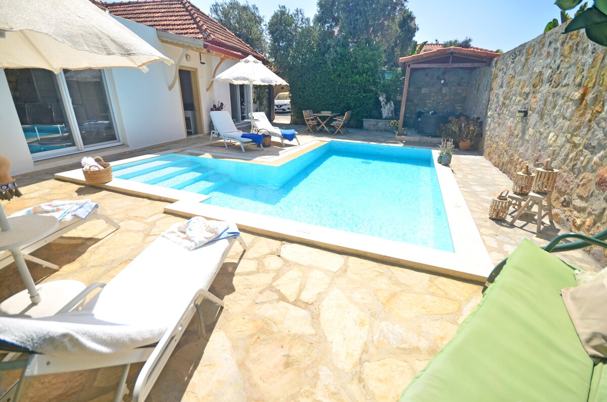 《nasz instagram: kosstonehouse》 Jeśli jesteśmy zarezerwowani, skontaktuj się z nami mimo wszystko Unikalny, ekologiczny, ręcznie zbudowany, piękny kamienny dom, w który włożyliśmy wiele wysiłku i miłości. Jest otoczony mieszanką dzikich jałowców i 45-letnich sosen i drzew cyprysowych posadzonych przez moją rodzinę Drzewa zapewniają prywatność w okolicy, jest idealna dla tych, którzy również lubią nudyzm. Ten 3-pokojowy dom jest idealny dla par, przyjaciół lub rodzin, które chcą spędzić razem wakacje, w relaksującej, spokojnej atmosferze