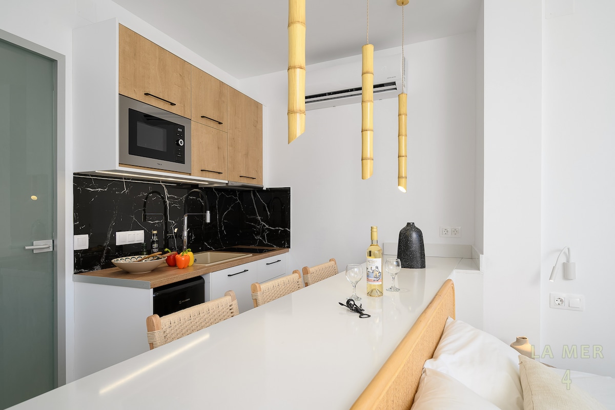 At La MER 4 suite, you’ll find tranquility, stunning scenery, and serene moments with an awe-inspiring view of the legendary Matala Red Beach where the evening dazzles with vibrant sunsets. Gaze out at the iconic hippie caves and the endless sea. Built in 2025 at a centrally-located place, La MER 4 suite provides a modern environment with every amenity for a truly comfortable stay.