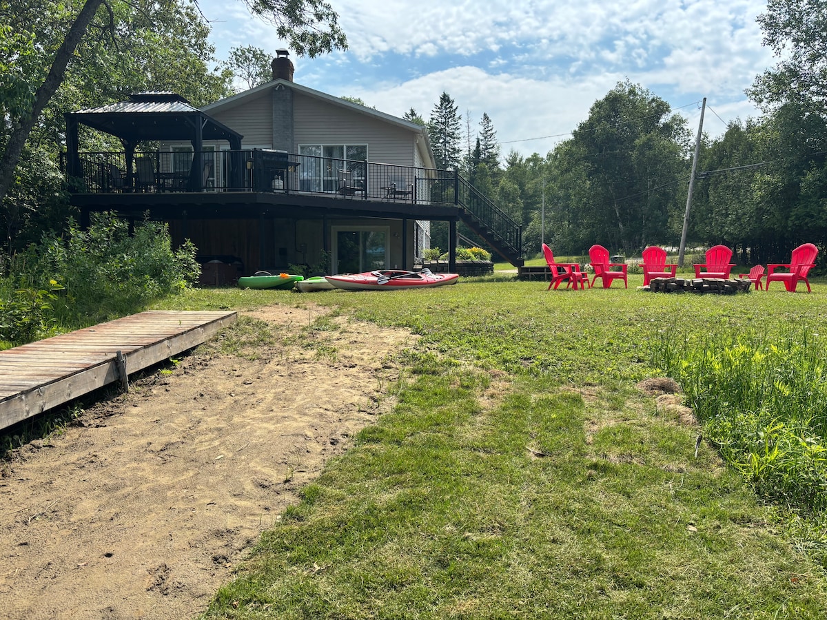 W pełni wyposażony całoroczny domek nad jeziorem z klimatyzacją/pompą ciepła, wewnętrznym kominkiem z kamienia, paleniskiem na zewnątrz, spa dla 8 osób, prywatnym pomostem i pełną flotą łodzi. Szybki internet światłowodowy i automatyczny generator zapasowy zapewniają komfort przez cały czas. Położony 1,5 godziny od Montrealu nad dużym jeziorem z prywatną piaszczystą plażą, panoramicznymi widokami i spokojną leśną okolicą. Idealne na relaks lub pracę zdalną.