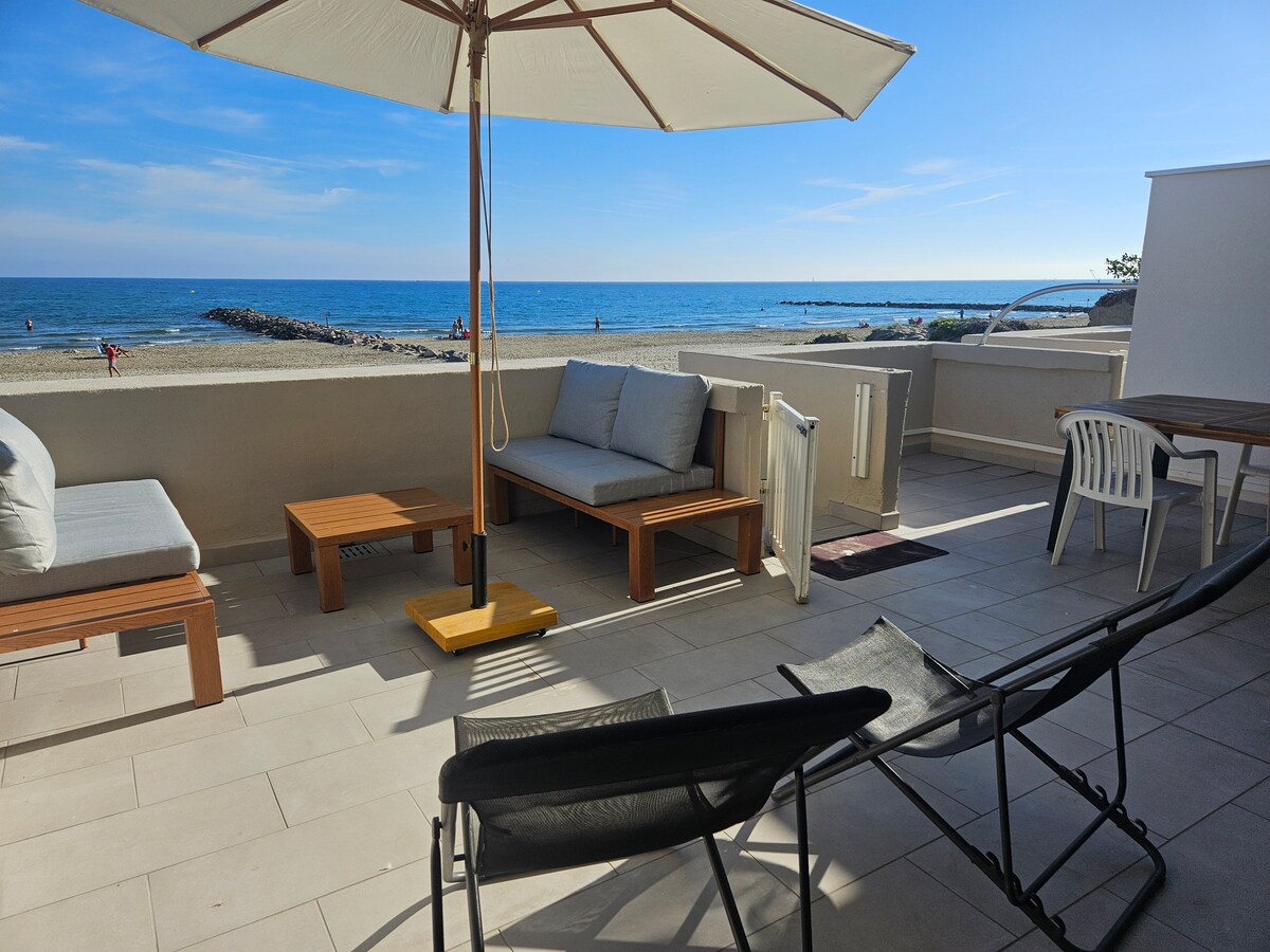 Ciesz się wakacjami w Palavas z nogami w wodzie w tym 3-gwiazdkowym 🌟🌟🌟 apartamencie, idealnym dla rodzin lub grup przyjaciół. Taras z bezpośrednim dostępem do plaży, panoramiczny widok na morze, 3 wygodne sypialnie, jasny salon, w pełni wyposażona kuchnia i prywatny parking. Rano kawa z widokiem na morze ☕ Wieczorem poczęstuj się aperitifem na prywatnym tarasie 🌅