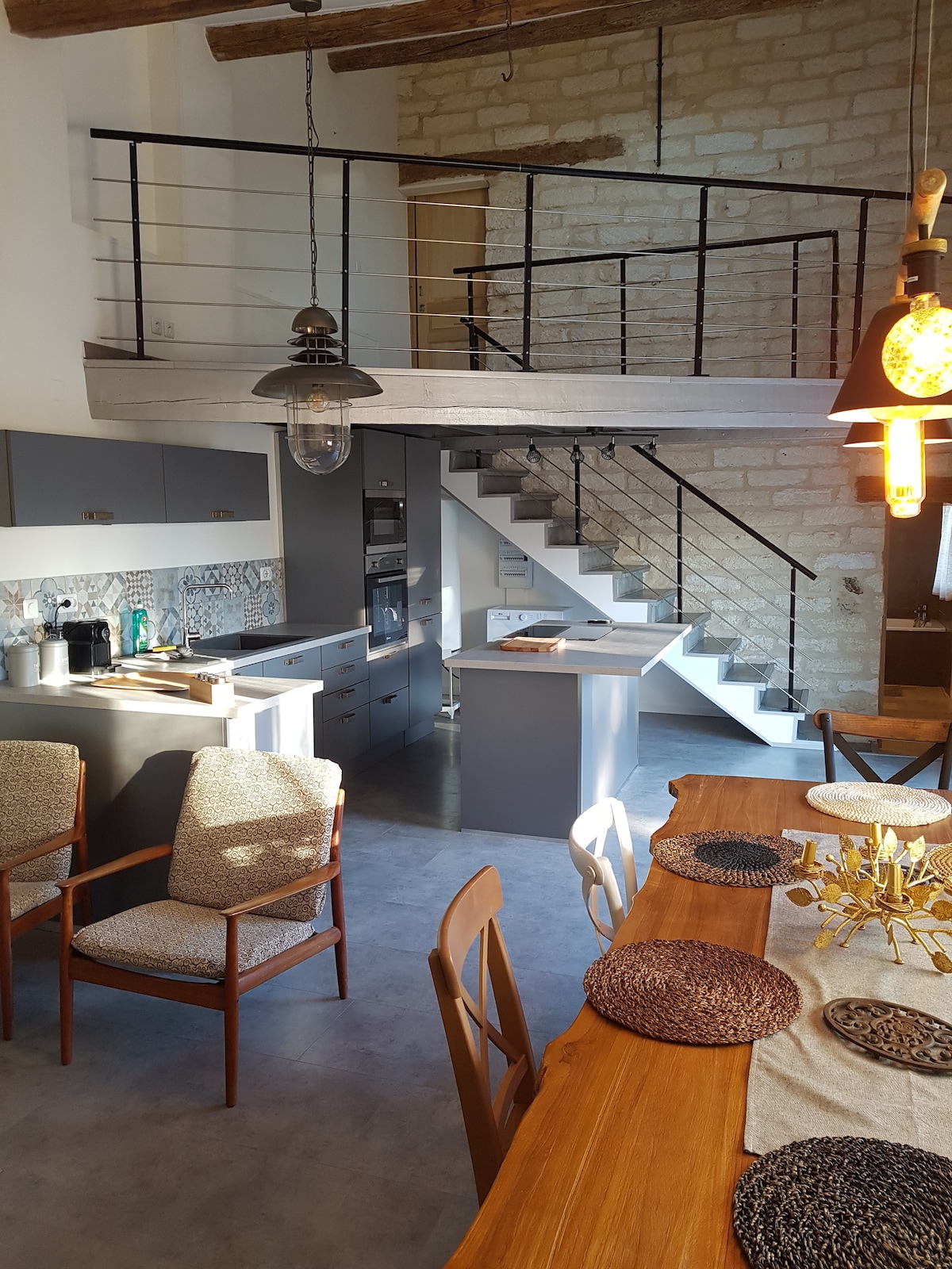 Entièrement rénové, ce loft moderne est composé de 2 chambres, une avec un lit double en 180 et l'autre avec 2 lits simples. Une grande cuisine entière équipée ouverte sur le salon avec cheminée et donnant sur une grande terrasse privative close et sans vis à vis. Vous pourrez profiter de l'espace piscine qui comprend une grande piscine mais aussi une pataugeoire pour les plus petits, d'une cuisine d'été avec bbq au gaz et brasero Nous sommes situés à la campagne et un véhicule est nécessaire.