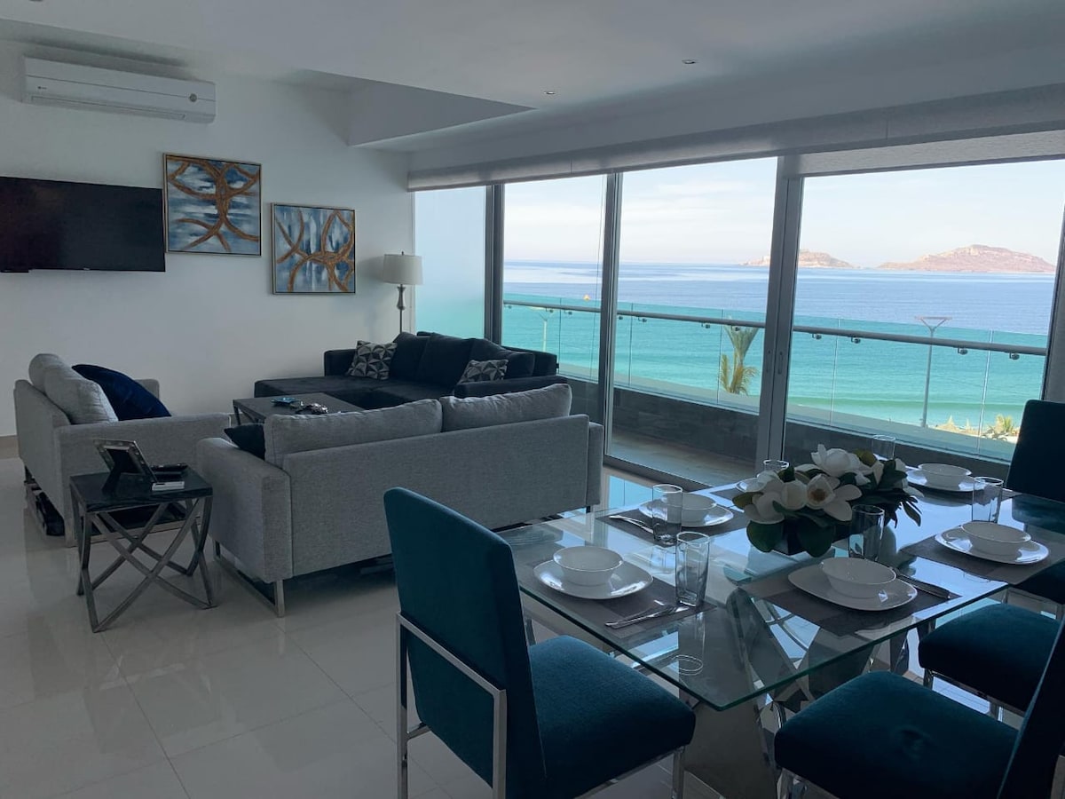Live an unforgettable vacation in Mazatlan with luxury, comfort and a spectacular ocean view. Enjoy a space designed for your rest with ocean view and luxury finishes. It has 2 bedrooms - each with minisplit and TV. Sleeps up to 4 people comfortably. Living room with 75" screen, spacious dining room and fully equipped kitchen. Everything you need to relax and enjoy paradise!