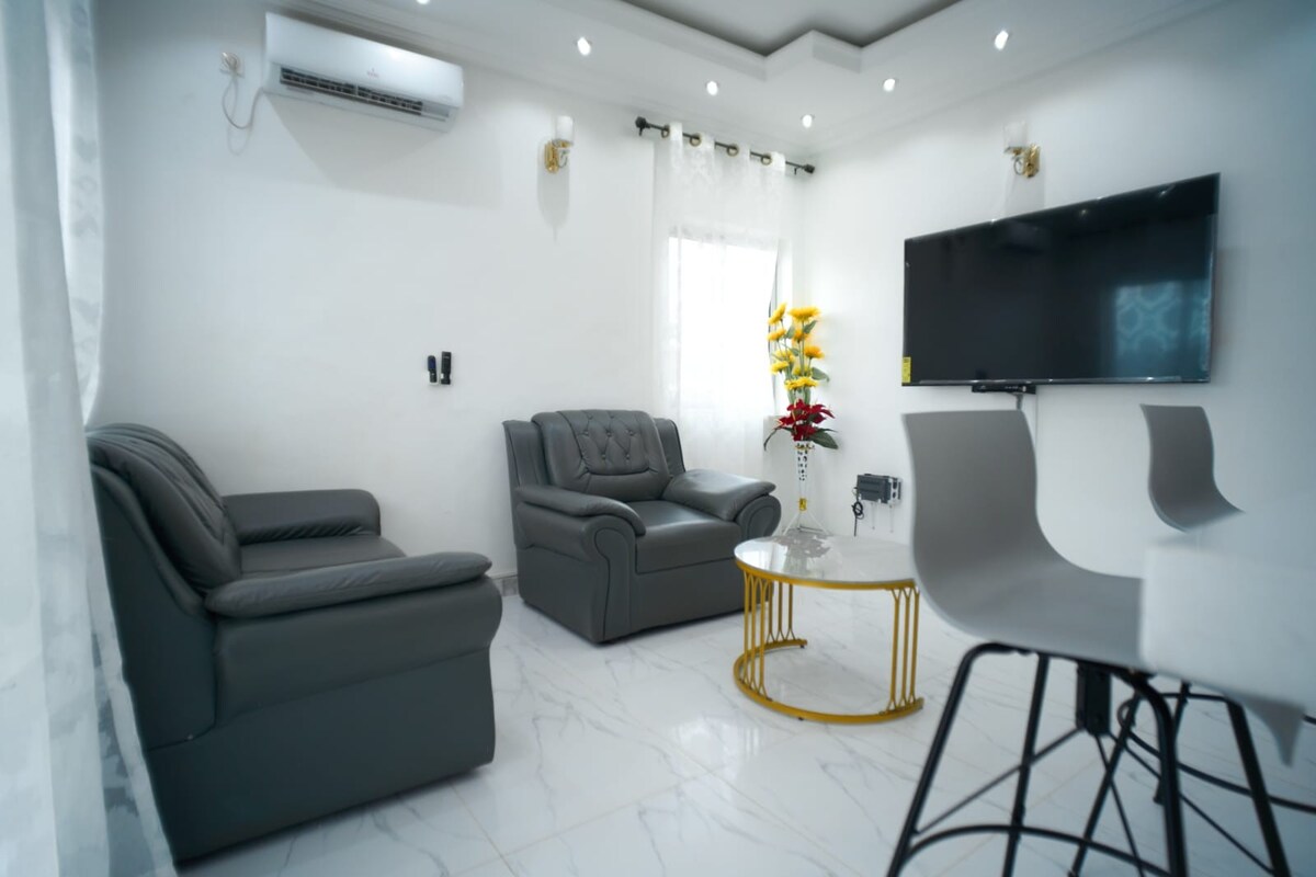 Ten apartament z jedną sypialnią oferuje nowoczesną i wygodną przestrzeń, idealną na przyjemny pobyt w Yaoundé. Ma 2 toalety, jasny salon, w pełni wyposażoną kuchnię i prywatny balkon idealny na relaks. Pokój jest klimatyzowany i możesz korzystać z szybkiego internetu, a także wszystkich niezbędnych udogodnień na krótki lub dłuższy pobyt. Wygodny, cichy i bezpieczny wybór dla osób podróżujących w pojedynkę, par lub osób podróżujących służbowo.