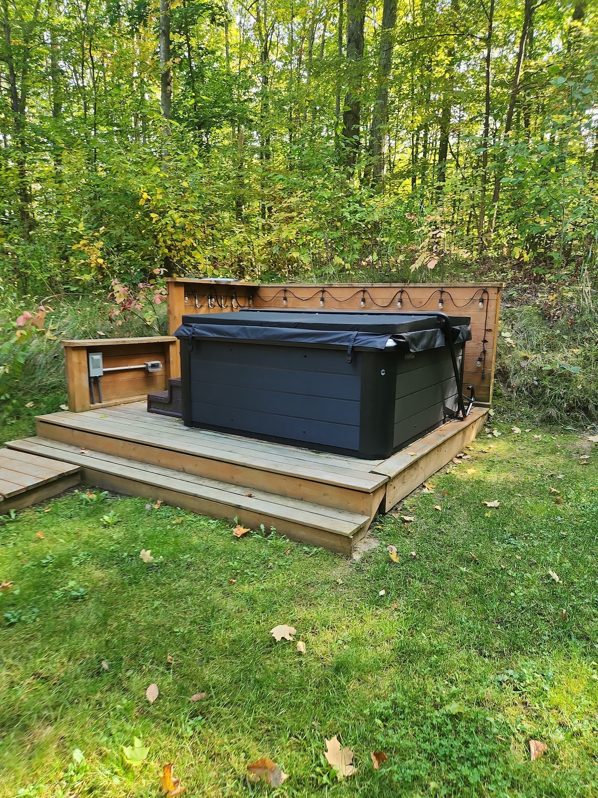 Ciesz się spokojnym pobytem w lesie w nowośrodku wypoczynkowym. Znajduje się 15 minut od Cadillac. Ciesz się wyjątkowymi widokami z części dziennej na drugim piętrze. Domek ma 2 sypialnie, łazienkę, w pełni wyposażoną kuchnię i przestronny salon. Podziwiaj wschody i zachody słońca na dużym tarasie na najwyższym poziomie. Najważniejsze udogodnienia: wanna z hydromasażem, piec zewnętrzny, ekspres do kawy Keurig, pralka/suszarka, podniesiony taras 16'x24' i szlaki spacerowe na terenie całej posesji. Dostęp dla gości: górny poziom chatki. *Wejdź do kabiny przez schody na pokład.