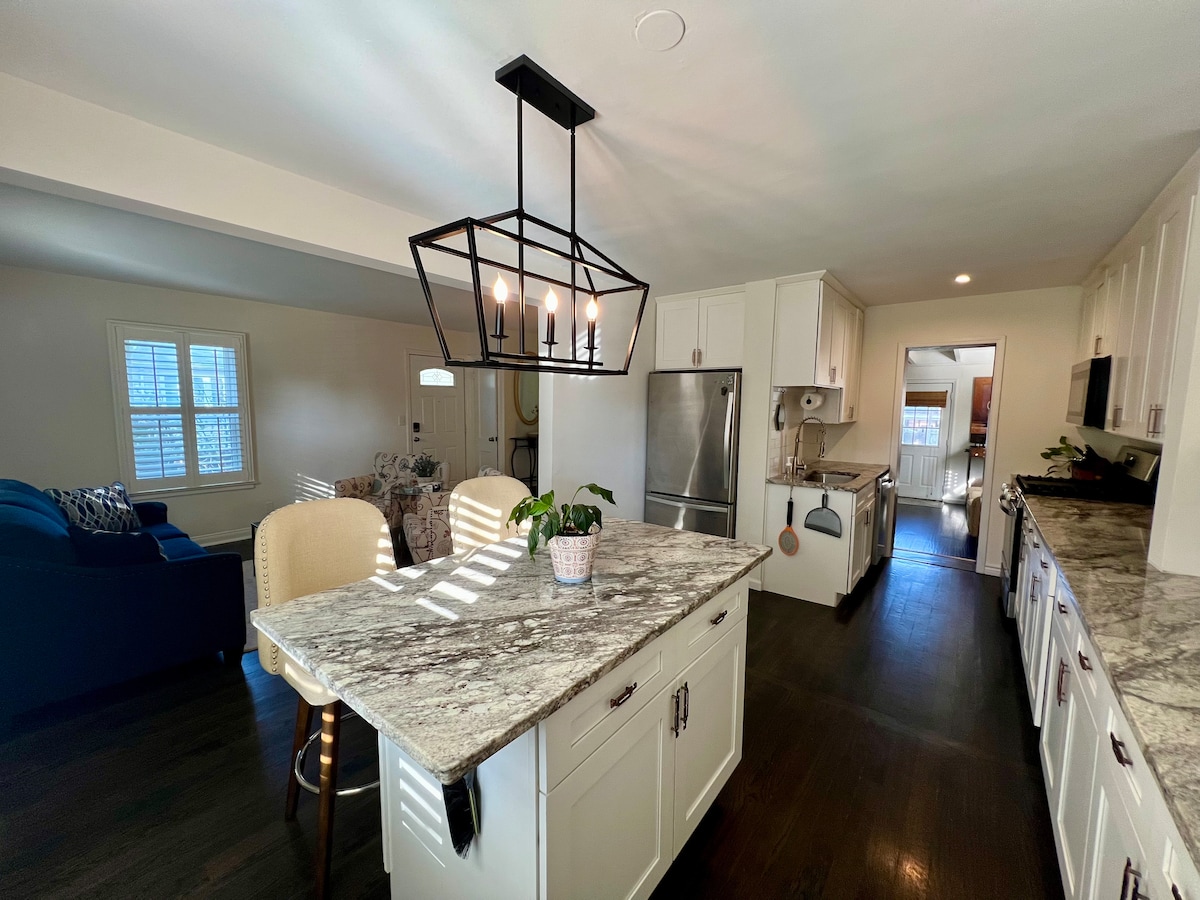 Poznaj miasto w dobrym stylu w Retro Modern Bungalow, idealnym miejscu dla maksymalnie 4 przyjaciół. Dwie przestronne sypialnie – każda z łóżkiem typu king i luksusową pościelą – palenisko na propan i w pełni ogrodzone podwórko przyjazne dla psów. Korzystaj z centralnej klimatyzacji, szybkiego Wi-Fi i wydzielonego miejsca do pracy. Łóżeczko typu pack-n-play jest dostępne bezpłatnie. Centralna lokalizacja na południe od Oak Park, 15 minut od lotniska Midway i 20 minut od centrum. Zaparkuj za darmo w naszym garażu lub złap pociąg kilka przecznic dalej.