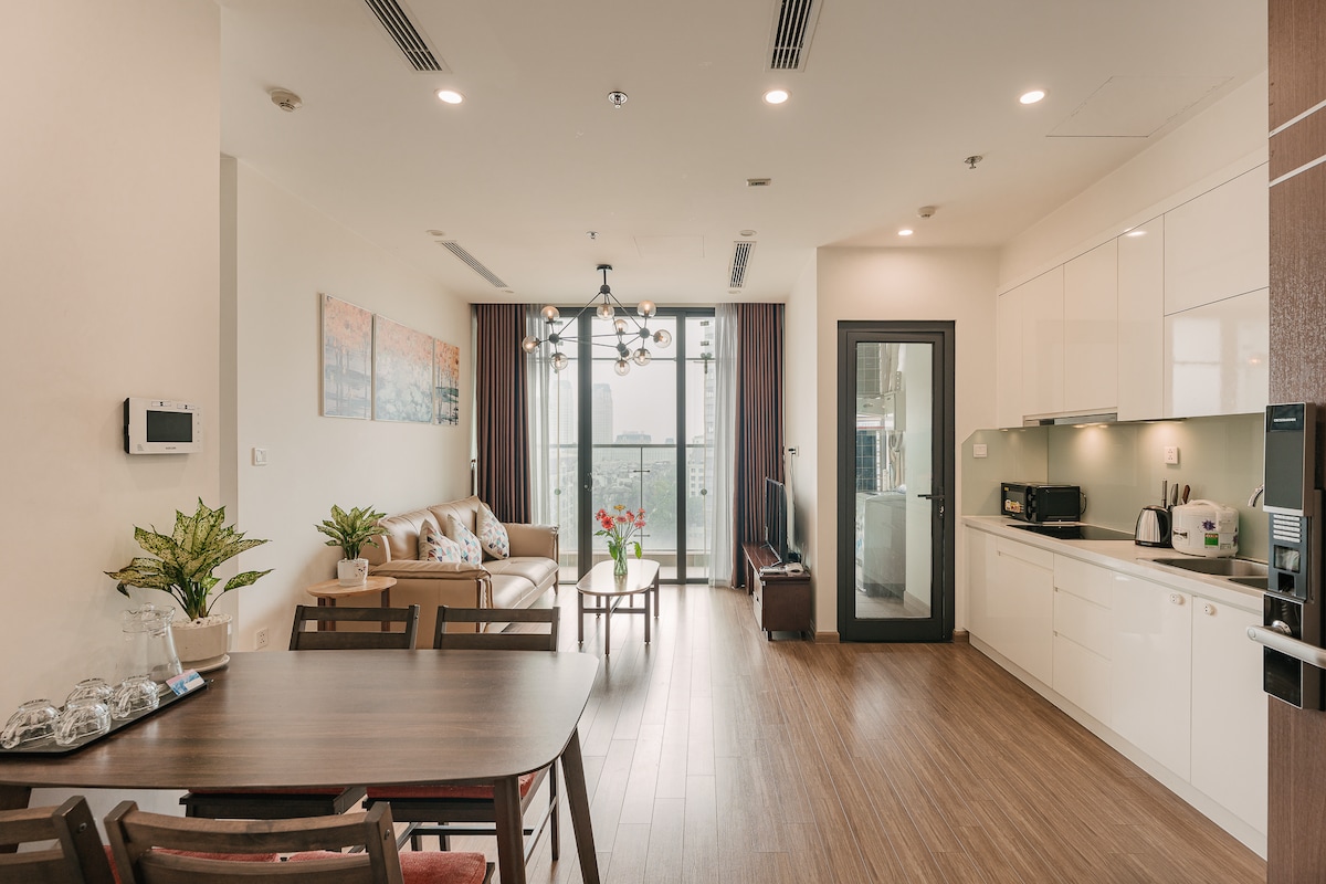 High-end apartment at Vinhomes Smart City with full amenities for couples, tourists or business travelers. Here you will rest and relax in a peaceful, luxurious space. Utilities include: 1. Indoor swimming pool 2. Outdoor swimming pool (seasonal) 3. Gym 4. Working Space 5. Shopping and entertainment at Vincom Mega Mall. 6. Check-in and take virtual photos at Japanese Garden 7. Stroll between the blue sea and white sand in the heart of Hanoi. 8. BBQ Party