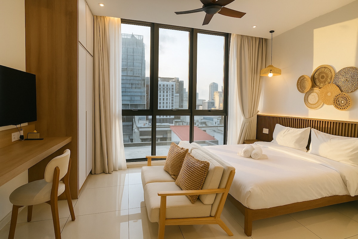 Ciesz się tym stylowym apartamentem z jedną sypialnią i balkonem w Quill Residences. Może wygodnie pomieścić trzy osoby z dużym łóżkiem i bardzo pojedynczym łóżkiem. W moim przewodniku znajdziesz osobiste rekomendacje dotyczące eleganckich kawiarni i restauracji w okolicy. Dzięki połączeniu z kolejką jednoszynową Medan Tuanku goście mogą łatwo odkryć inne części centrum KL. Jeśli to Twój pierwszy pobyt w KL, oferuję gościom spacer, w zależności od dostępności czasu.