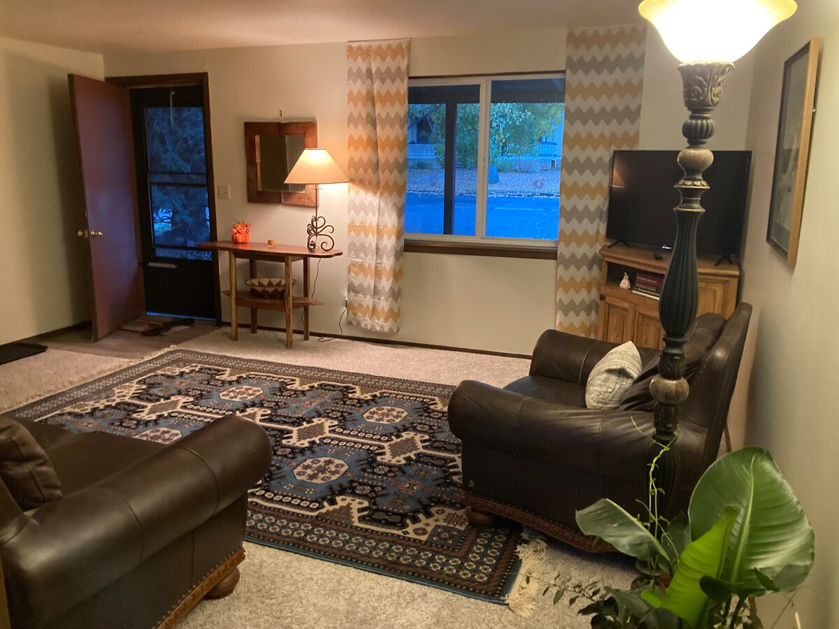 Ciesz się tradycyjnym życiem w Kolorado w tym apartamencie z 2 sypialniami i 1 łazienką z zewnętrznym wejściem i wszystkimi udogodnieniami przestronnego, podstawowego apartamentu hotelowego kilka mil od Meeker. Przyjazne dla rodzin, chociaż schody są bardzo strome i nie są zalecane dla wszystkich. Dużo miejsc parkingowych dla pojazdów i przyczep. Możesz swobodnie spacerować po zboczu wzgórza bezpośrednio za domem.